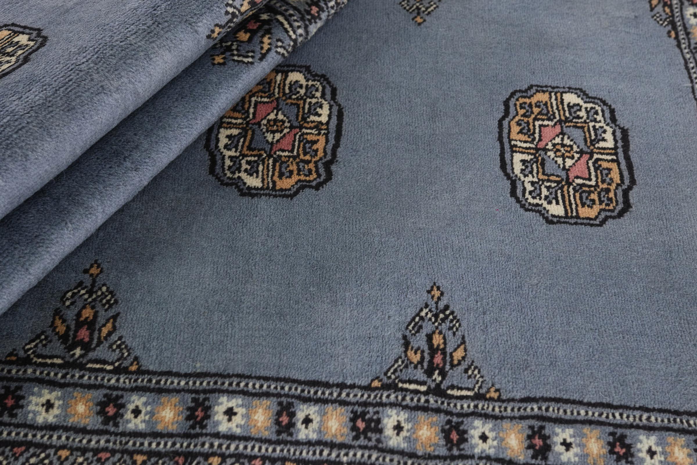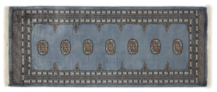 Una gran parte de la producción de alfombras pakistaníes tiene lugar en las ciudades de Lahore y Karachi y sus alrededores. Muchos de los tejedores de alfombras de esa época huyeron a Pakistán durante la guerra con la India y se establecieron allí. Hoy en día, se conocen especialmente las alfombras anudadas a mano de Pakistán Bukhara. Al igual que las alfombras orientales afganas, las alfombras paquistaníes también son de colores oscuros y en su mayoría tienen tonos rojos. También el conocido patrón de pata de elefante (patrón octogonal repetido) se puede encontrar en un pakistaní.