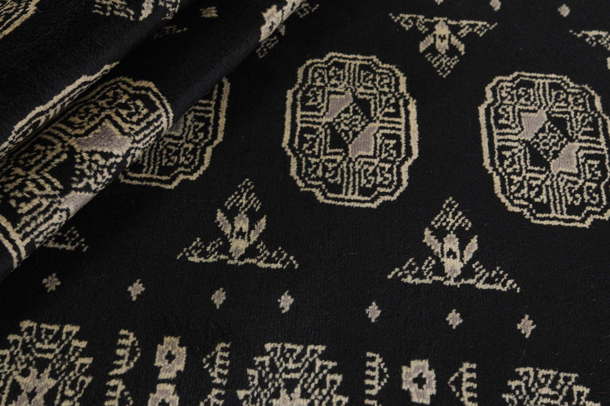 Esta alfombra anudada a mano procedente de Pakistán tiene rasgos muy típicos. Los ornamentos redondos se repiten en el suelo y conforman el tipo de alfombra. 2Ply y 3Ply son diferencias en la densidad de anudado de las alfombras. Una 3Ply suele tener un anudado más denso y, por tanto, es más costosa de producir y algo más robusta. Estas hermosas alfombras son populares por sus fascinantes colores y su diseño sereno.