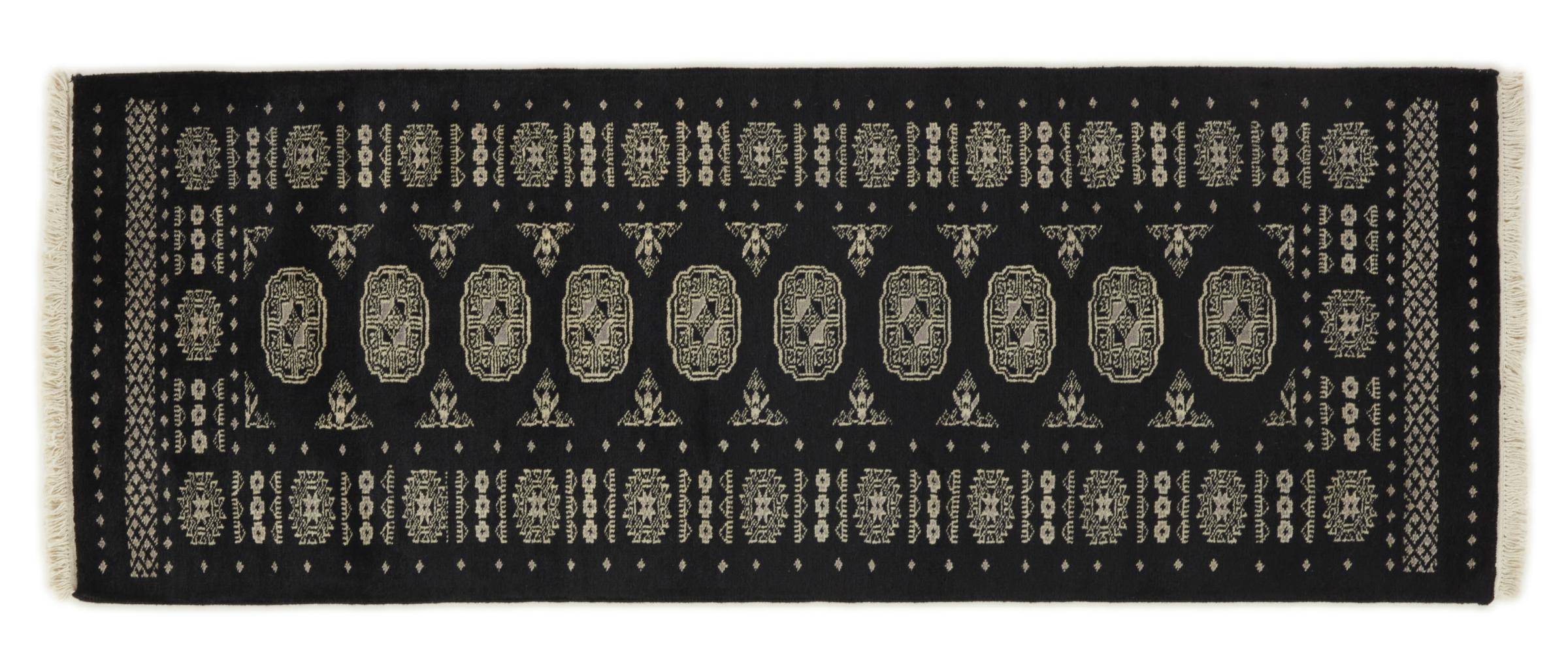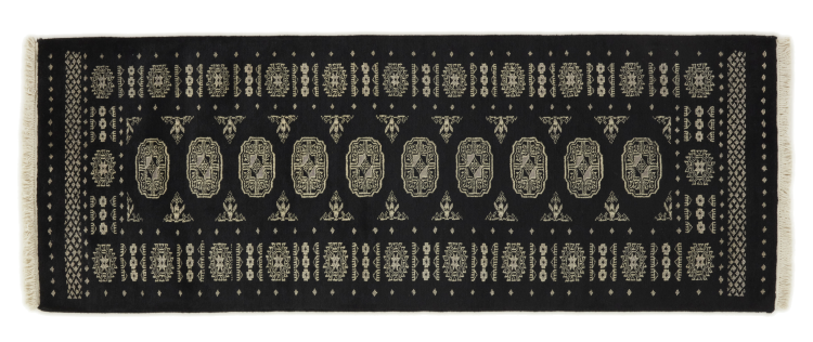 Una gran parte de la producción de alfombras pakistaníes tiene lugar en las ciudades de Lahore y Karachi y sus alrededores. Muchos de los tejedores de alfombras de esa época huyeron a Pakistán durante la guerra con la India y se establecieron allí. Hoy en día, se conocen especialmente las alfombras anudadas a mano de Pakistán Bukhara. Al igual que las alfombras orientales afganas, las alfombras paquistaníes también son de colores oscuros y en su mayoría tienen tonos rojos. También el conocido patrón de pata de elefante (patrón octogonal repetido) se puede encontrar en un pakistaní.