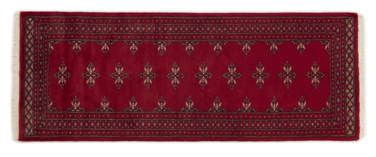 Una gran parte de la producción de alfombras pakistaníes tiene lugar en las ciudades de Lahore y Karachi y sus alrededores. Muchos de los tejedores de alfombras de esa época huyeron a Pakistán durante la guerra con la India y se establecieron allí. Hoy en día, se conocen especialmente las alfombras anudadas a mano de Pakistán Bukhara. Al igual que las alfombras orientales afganas, las alfombras paquistaníes también son de colores oscuros y en su mayoría tienen tonos rojos. También el conocido patrón de pata de elefante (patrón octogonal repetido) se puede encontrar en un pakistaní.