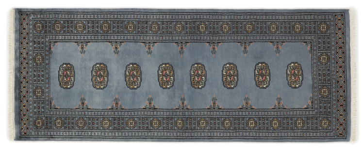Una gran parte de la producción de alfombras pakistaníes tiene lugar en las ciudades de Lahore y Karachi y sus alrededores. Muchos de los tejedores de alfombras de esa época huyeron a Pakistán durante la guerra con la India y se establecieron allí. Hoy en día, se conocen especialmente las alfombras anudadas a mano de Pakistán Bukhara. Al igual que las alfombras orientales afganas, las alfombras paquistaníes también son de colores oscuros y en su mayoría tienen tonos rojos. También el conocido patrón de pata de elefante (patrón octogonal repetido) se puede encontrar en un pakistaní.