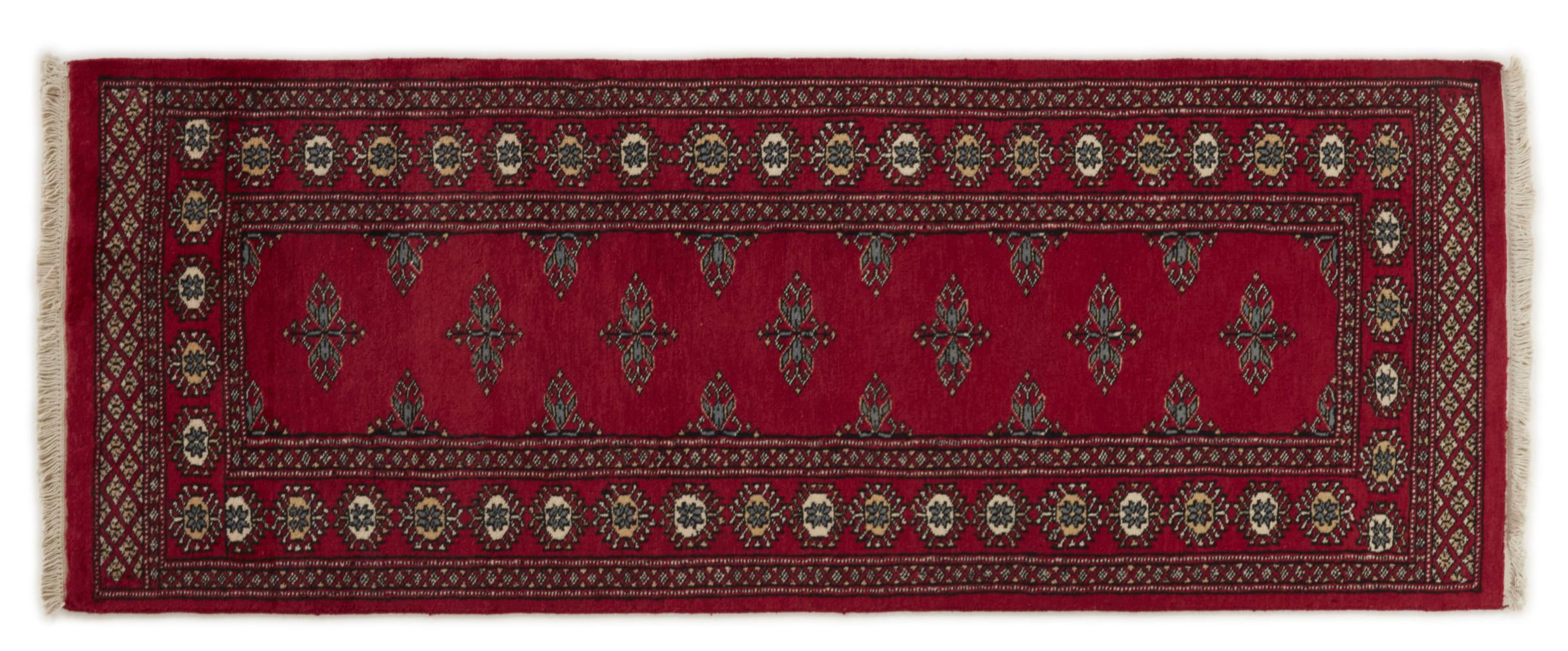 Una gran parte de la producción de alfombras pakistaníes tiene lugar en las ciudades de Lahore y Karachi y sus alrededores. Muchos de los tejedores de alfombras de esa época huyeron a Pakistán durante la guerra con la India y se establecieron allí. Hoy en día, se conocen especialmente las alfombras anudadas a mano de Pakistán Bukhara. Al igual que las alfombras orientales afganas, las alfombras paquistaníes también son de colores oscuros y en su mayoría tienen tonos rojos. También el conocido patrón de pata de elefante (patrón octogonal repetido) se puede encontrar en un pakistaní.