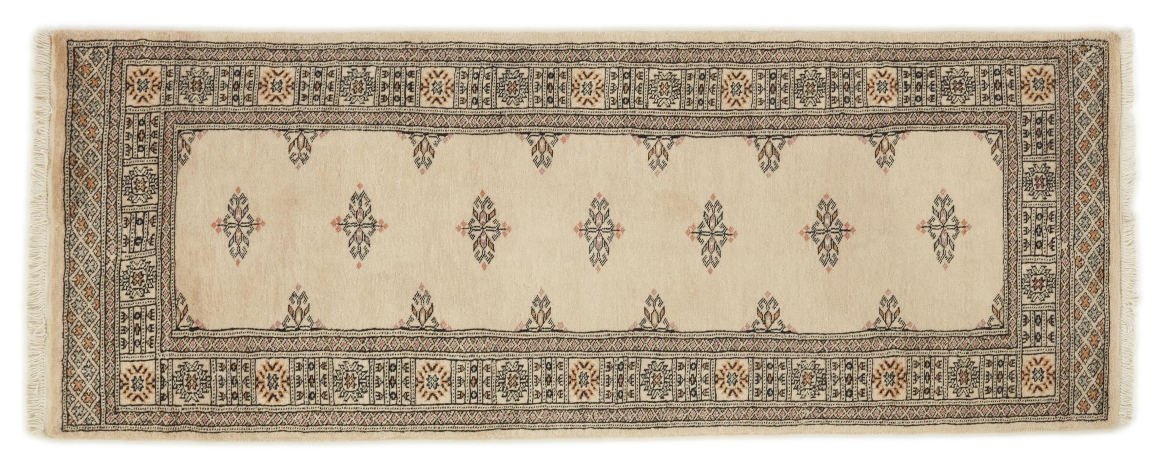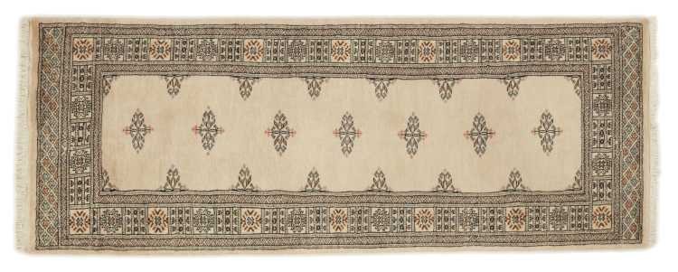 Una gran parte de la producción de alfombras pakistaníes tiene lugar en las ciudades de Lahore y Karachi y sus alrededores. Muchos de los tejedores de alfombras de esa época huyeron a Pakistán durante la guerra con la India y se establecieron allí. Hoy en día, se conocen especialmente las alfombras anudadas a mano de Pakistán Bukhara. Al igual que las alfombras orientales afganas, las alfombras paquistaníes también son de colores oscuros y en su mayoría tienen tonos rojos. También el conocido patrón de pata de elefante (patrón octogonal repetido) se puede encontrar en un pakistaní.