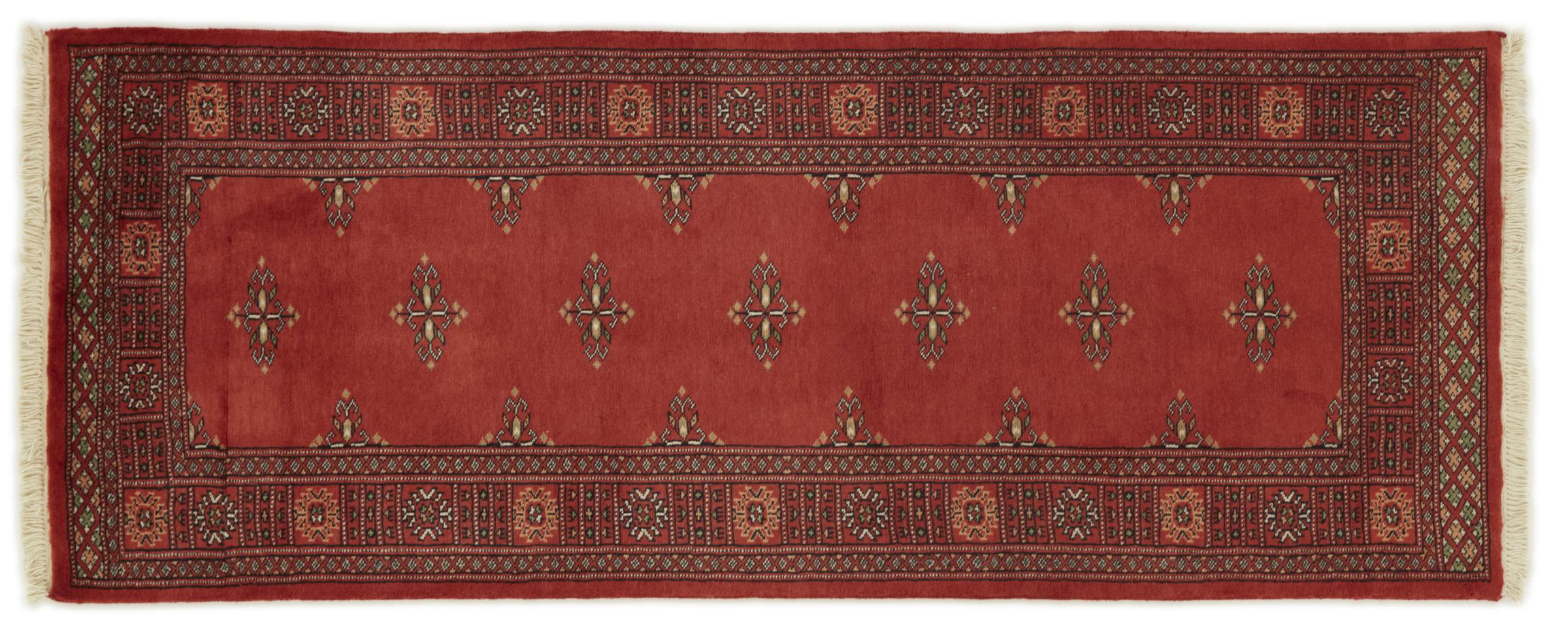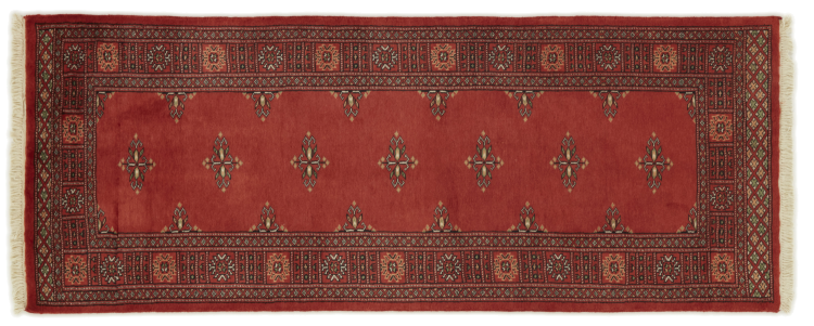 Una gran parte de la producción de alfombras pakistaníes tiene lugar en las ciudades de Lahore y Karachi y sus alrededores. Muchos de los tejedores de alfombras de esa época huyeron a Pakistán durante la guerra con la India y se establecieron allí. Hoy en día, se conocen especialmente las alfombras anudadas a mano de Pakistán Bukhara. Al igual que las alfombras orientales afganas, las alfombras paquistaníes también son de colores oscuros y en su mayoría tienen tonos rojos. También el conocido patrón de pata de elefante (patrón octogonal repetido) se puede encontrar en un pakistaní.