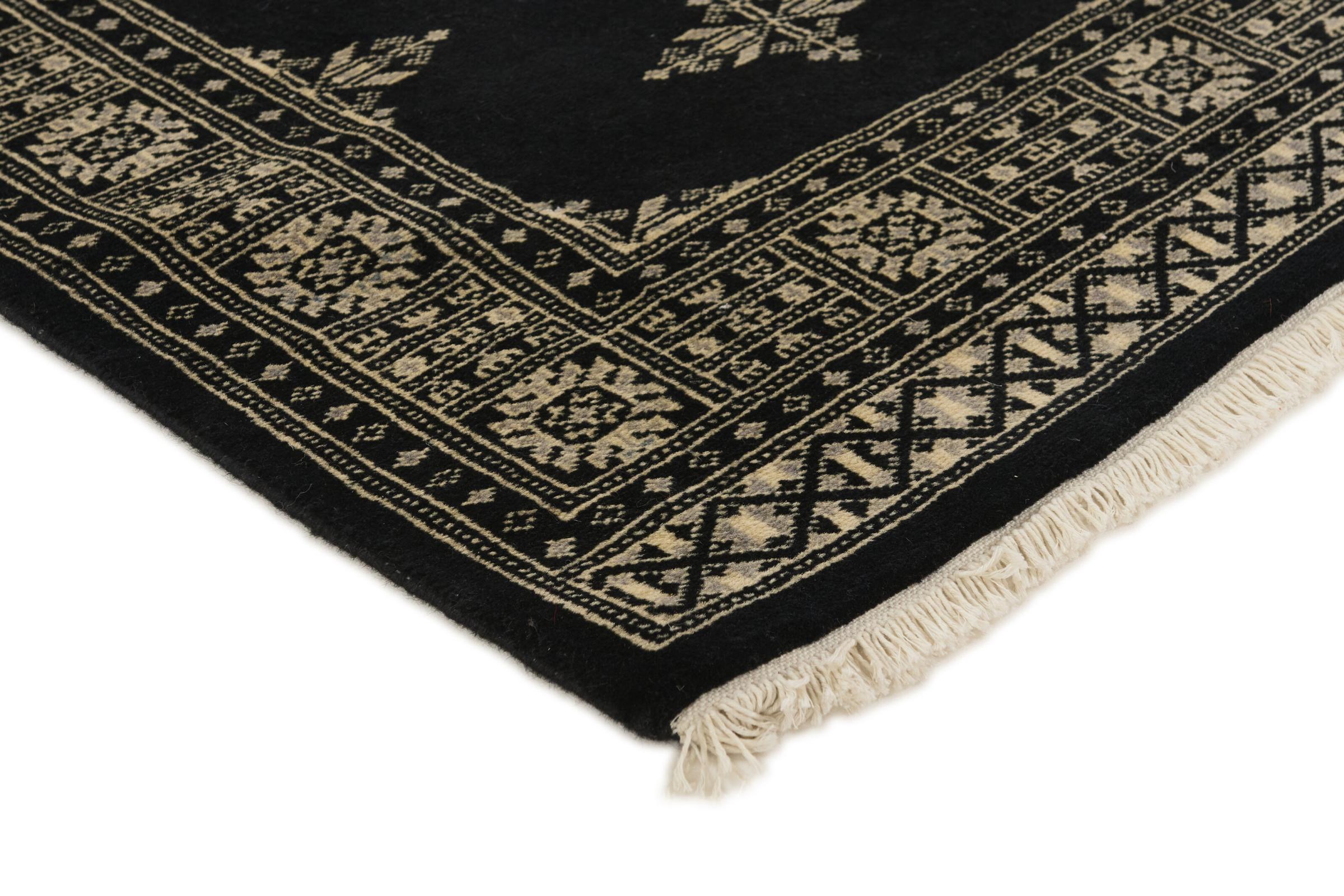Una gran parte de la producción de alfombras pakistaníes tiene lugar en las ciudades de Lahore y Karachi y sus alrededores. Muchos de los tejedores de alfombras de esa época huyeron a Pakistán durante la guerra con la India y se establecieron allí. Hoy en día, se conocen especialmente las alfombras anudadas a mano de Pakistán Bukhara. Al igual que las alfombras orientales afganas, las alfombras paquistaníes también son de colores oscuros y en su mayoría tienen tonos rojos. También el conocido patrón de pata de elefante (patrón octogonal repetido) se puede encontrar en un pakistaní.