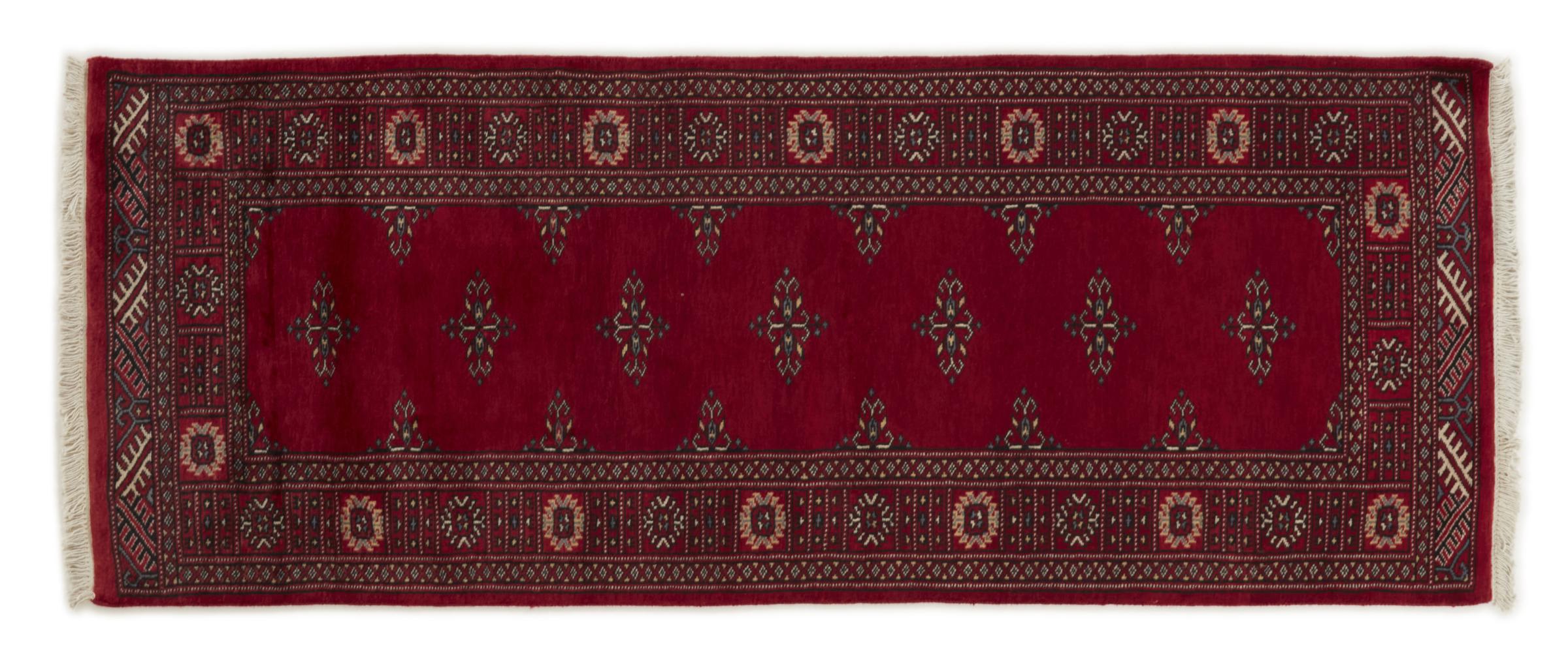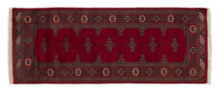 Una gran parte de la producción de alfombras pakistaníes tiene lugar en las ciudades de Lahore y Karachi y sus alrededores. Muchos de los tejedores de alfombras de esa época huyeron a Pakistán durante la guerra con la India y se establecieron allí. Hoy en día, se conocen especialmente las alfombras anudadas a mano de Pakistán Bukhara. Al igual que las alfombras orientales afganas, las alfombras paquistaníes también son de colores oscuros y en su mayoría tienen tonos rojos. También el conocido patrón de pata de elefante (patrón octogonal repetido) se puede encontrar en un pakistaní.