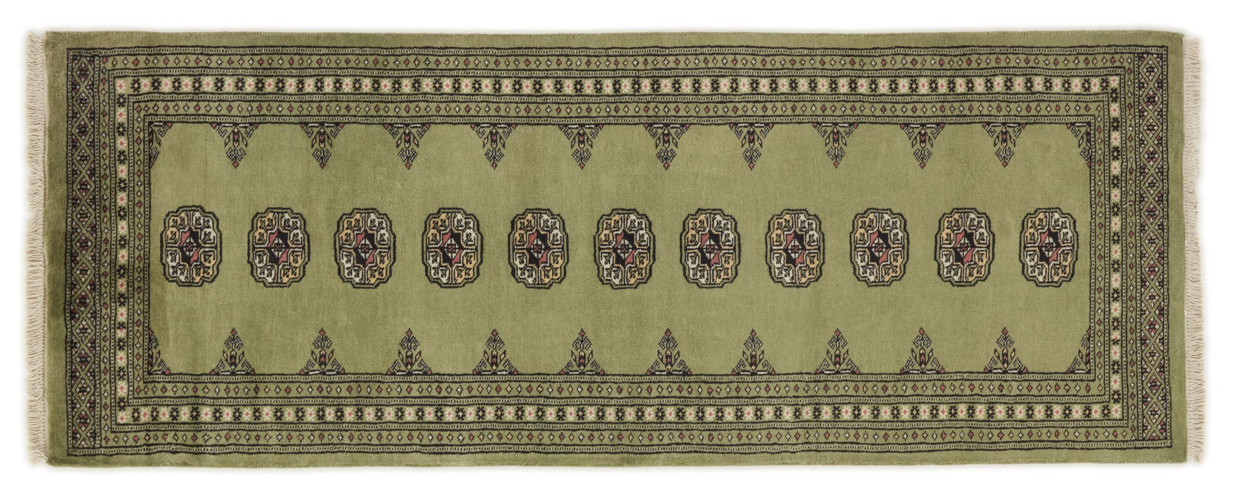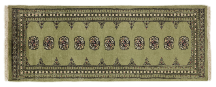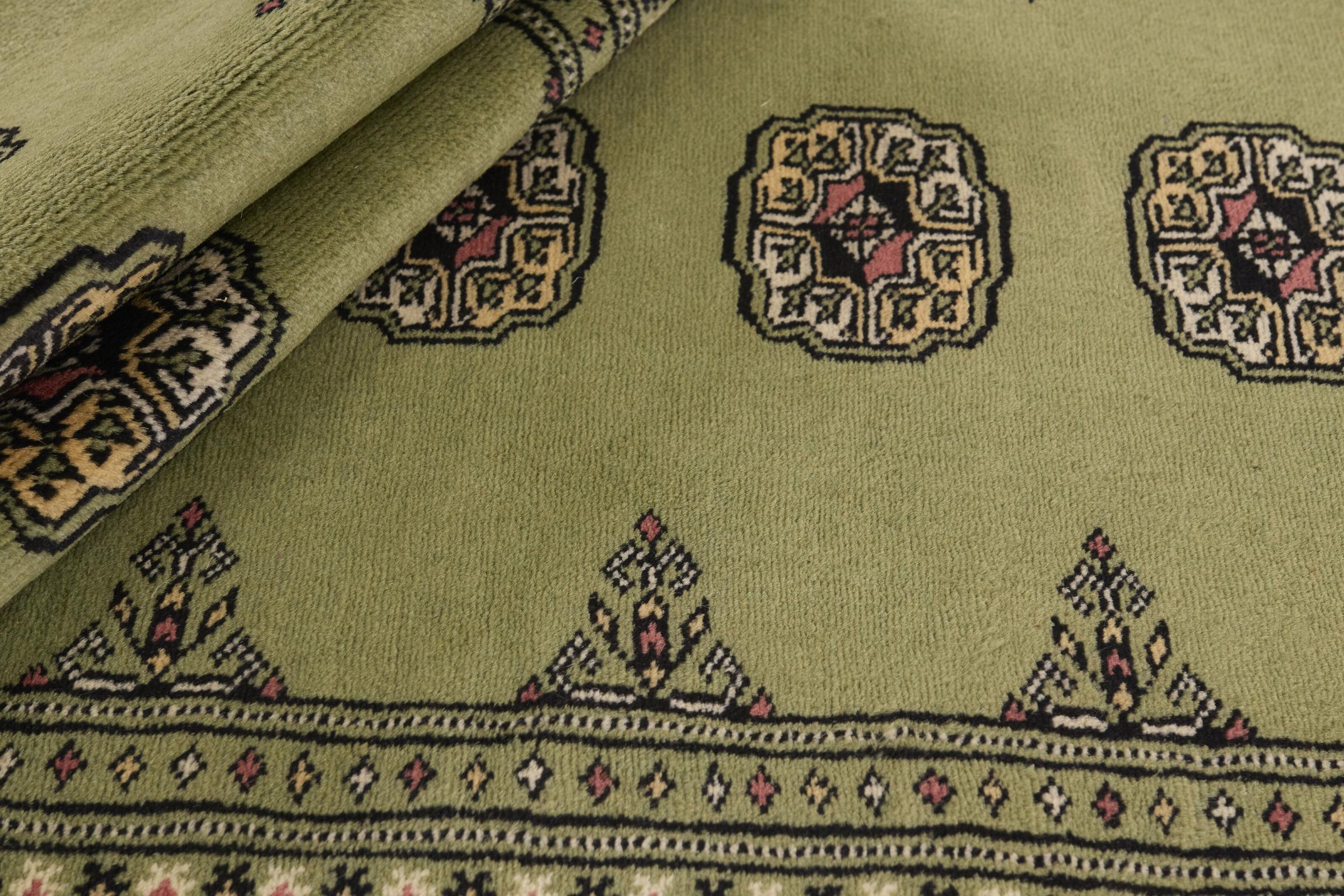 Una gran parte de la producción de alfombras pakistaníes tiene lugar en las ciudades de Lahore y Karachi y sus alrededores. Muchos de los tejedores de alfombras de esa época huyeron a Pakistán durante la guerra con la India y se establecieron allí. Hoy en día, se conocen especialmente las alfombras anudadas a mano de Pakistán Bukhara. Al igual que las alfombras orientales afganas, las alfombras paquistaníes también son de colores oscuros y en su mayoría tienen tonos rojos. También el conocido patrón de pata de elefante (patrón octogonal repetido) se puede encontrar en un pakistaní.