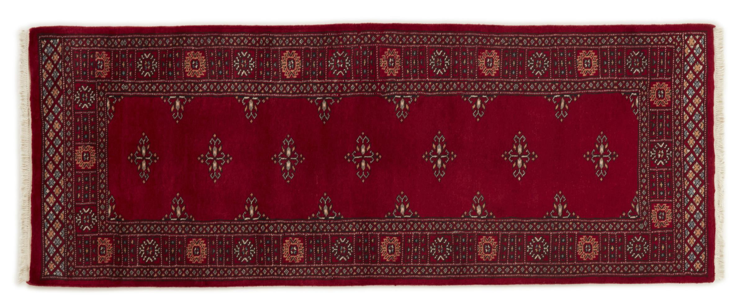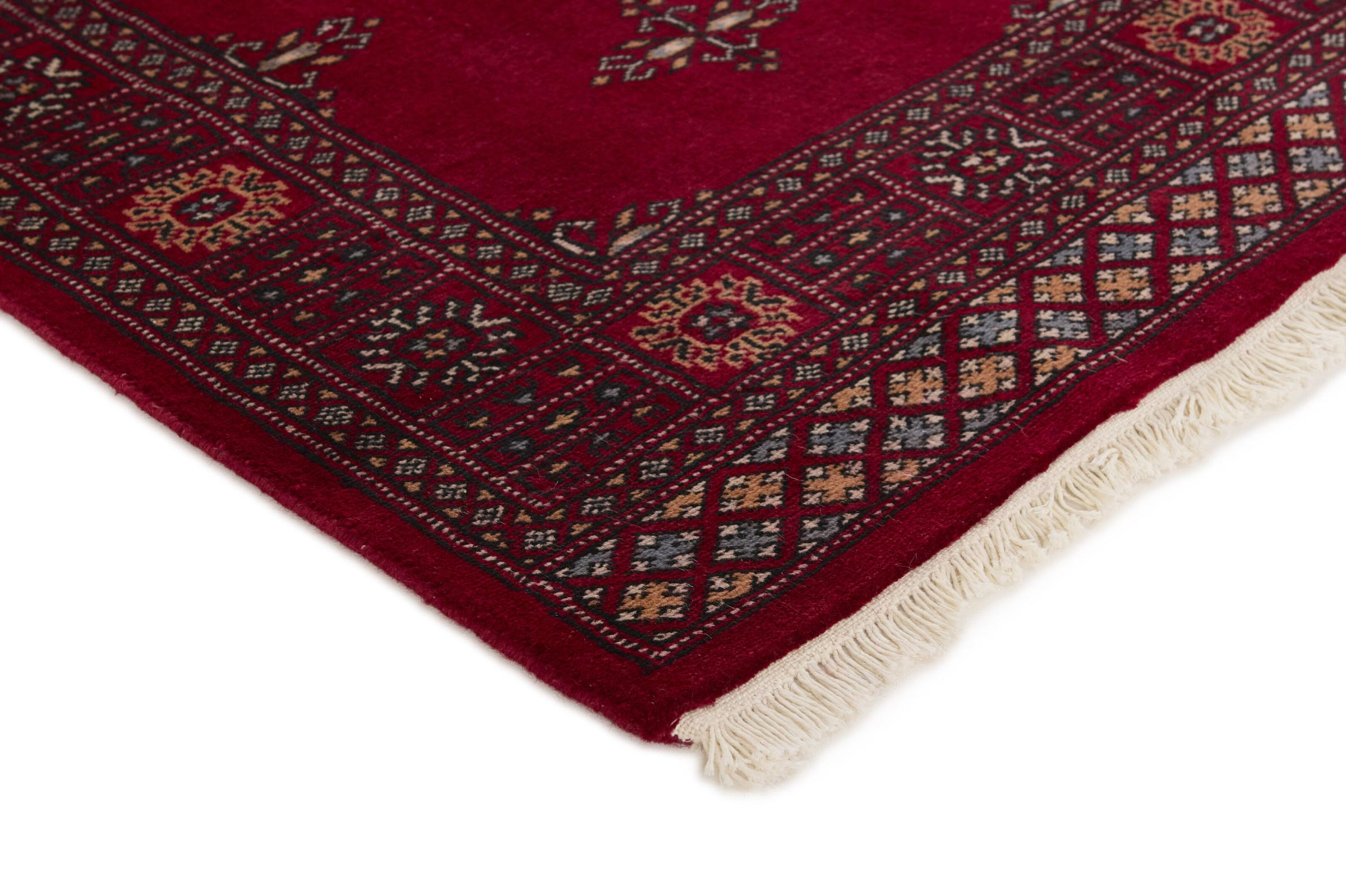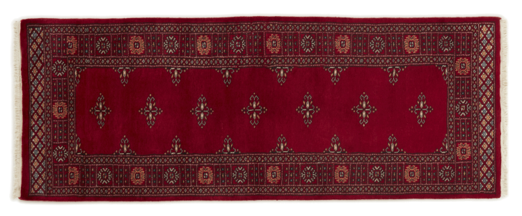 Una gran parte de la producción de alfombras pakistaníes tiene lugar en las ciudades de Lahore y Karachi y sus alrededores. Muchos de los tejedores de alfombras de esa época huyeron a Pakistán durante la guerra con la India y se establecieron allí. Hoy en día, se conocen especialmente las alfombras anudadas a mano de Pakistán Bukhara. Al igual que las alfombras orientales afganas, las alfombras paquistaníes también son de colores oscuros y en su mayoría tienen tonos rojos. También el conocido patrón de pata de elefante (patrón octogonal repetido) se puede encontrar en un pakistaní.