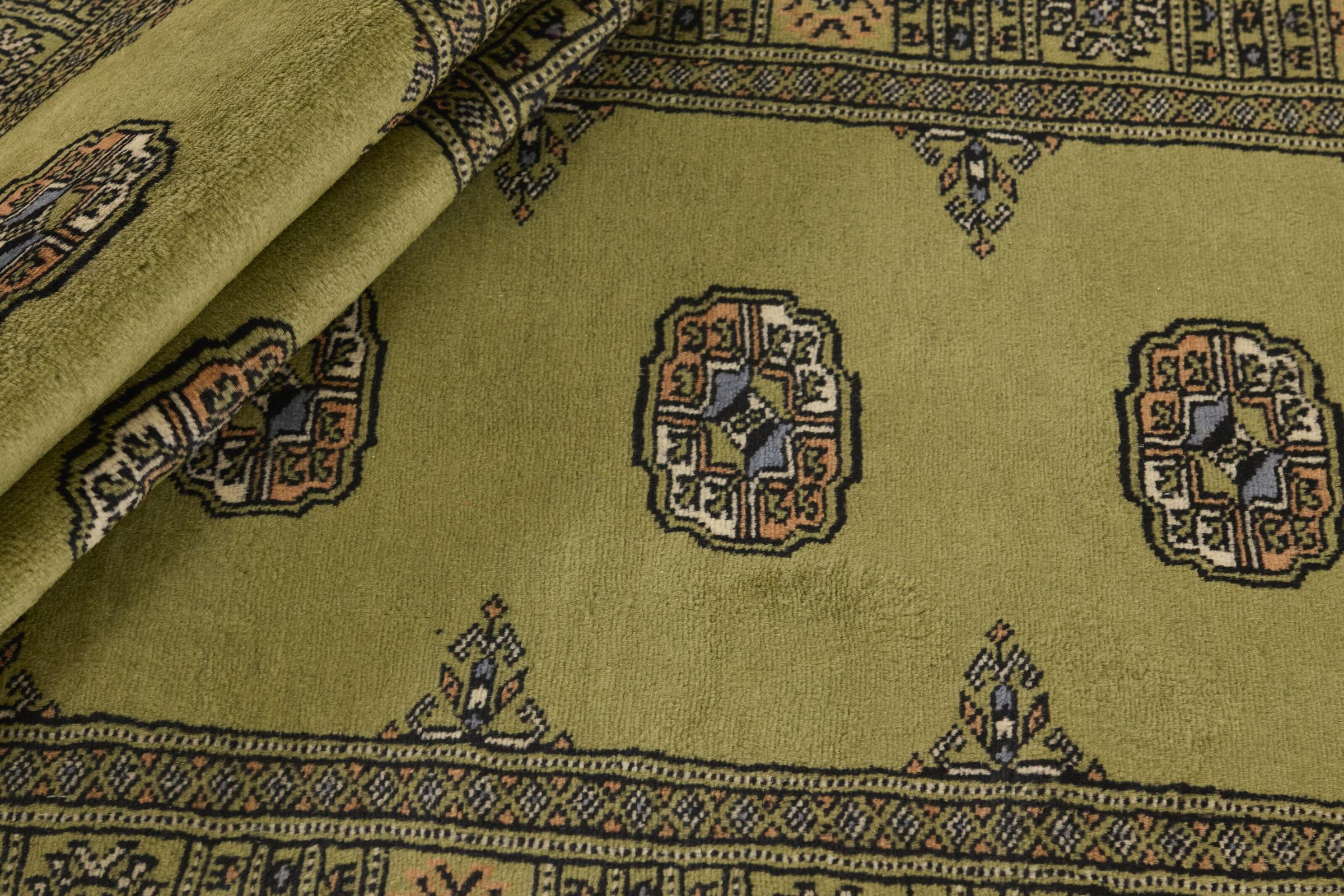 Una gran parte de la producción de alfombras pakistaníes tiene lugar en las ciudades de Lahore y Karachi y sus alrededores. Muchos de los tejedores de alfombras de esa época huyeron a Pakistán durante la guerra con la India y se establecieron allí. Hoy en día, se conocen especialmente las alfombras anudadas a mano de Pakistán Bukhara. Al igual que las alfombras orientales afganas, las alfombras paquistaníes también son de colores oscuros y en su mayoría tienen tonos rojos. También el conocido patrón de pata de elefante (patrón octogonal repetido) se puede encontrar en un pakistaní.