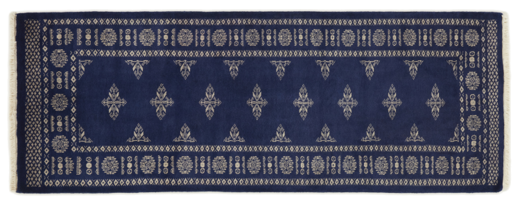 Una gran parte de la producción de alfombras pakistaníes tiene lugar en las ciudades de Lahore y Karachi y sus alrededores. Muchos de los tejedores de alfombras de esa época huyeron a Pakistán durante la guerra con la India y se establecieron allí. Hoy en día, se conocen especialmente las alfombras anudadas a mano de Pakistán Bukhara. Al igual que las alfombras orientales afganas, las alfombras paquistaníes también son de colores oscuros y en su mayoría tienen tonos rojos. También el conocido patrón de pata de elefante (patrón octogonal repetido) se puede encontrar en un pakistaní.