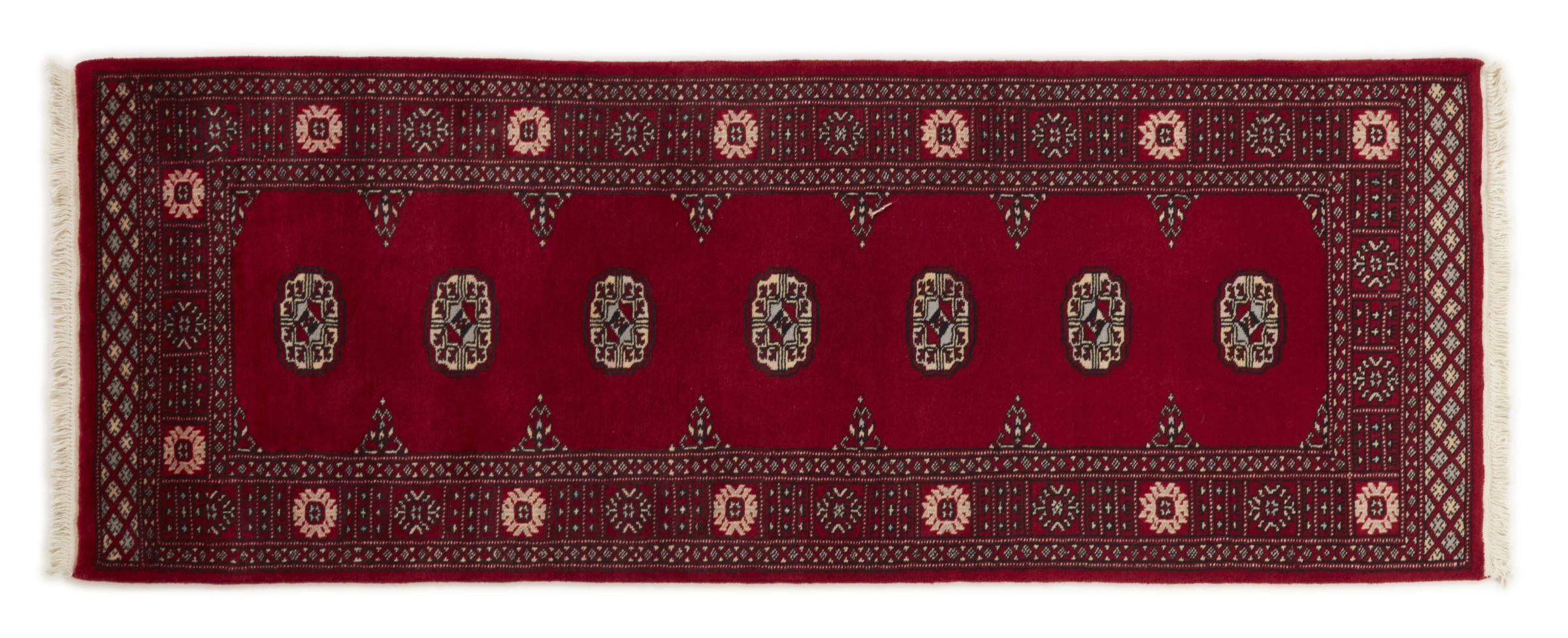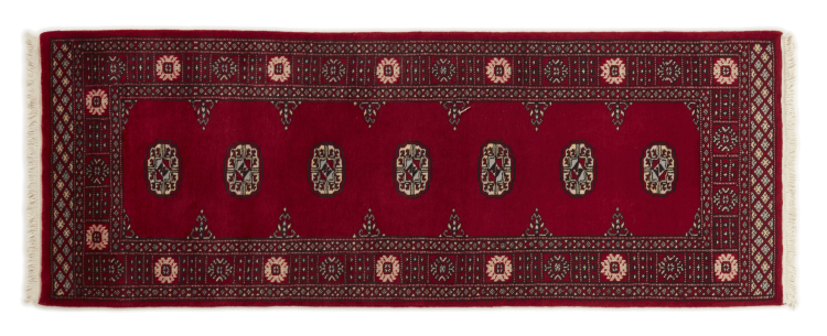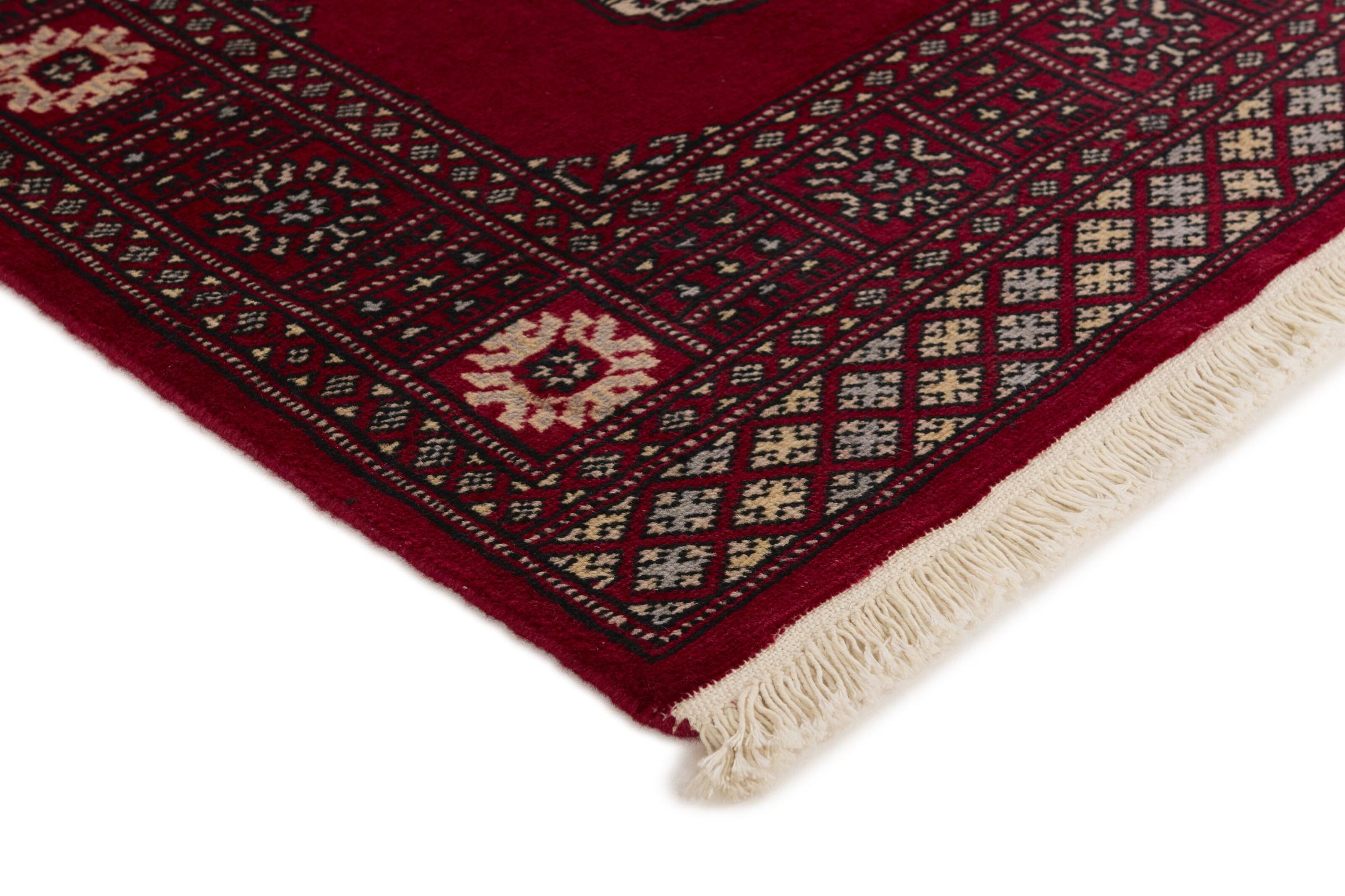 Una gran parte de la producción de alfombras pakistaníes tiene lugar en las ciudades de Lahore y Karachi y sus alrededores. Muchos de los tejedores de alfombras de esa época huyeron a Pakistán durante la guerra con la India y se establecieron allí. Hoy en día, se conocen especialmente las alfombras anudadas a mano de Pakistán Bukhara. Al igual que las alfombras orientales afganas, las alfombras paquistaníes también son de colores oscuros y en su mayoría tienen tonos rojos. También el conocido patrón de pata de elefante (patrón octogonal repetido) se puede encontrar en un pakistaní.