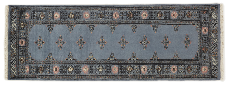 Una gran parte de la producción de alfombras pakistaníes tiene lugar en las ciudades de Lahore y Karachi y sus alrededores. Muchos de los tejedores de alfombras de esa época huyeron a Pakistán durante la guerra con la India y se establecieron allí. Hoy en día, se conocen especialmente las alfombras anudadas a mano de Pakistán Bukhara. Al igual que las alfombras orientales afganas, las alfombras paquistaníes también son de colores oscuros y en su mayoría tienen tonos rojos. También el conocido patrón de pata de elefante (patrón octogonal repetido) se puede encontrar en un pakistaní.