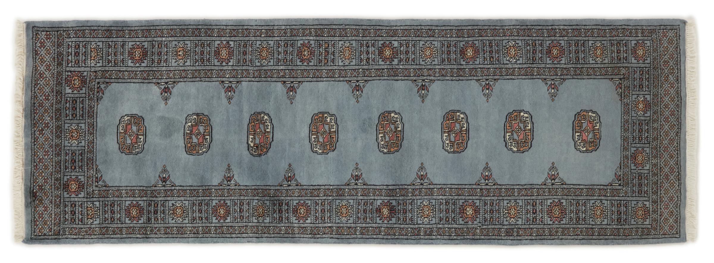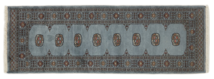 Una gran parte de la producción de alfombras pakistaníes tiene lugar en las ciudades de Lahore y Karachi y sus alrededores. Muchos de los tejedores de alfombras de esa época huyeron a Pakistán durante la guerra con la India y se establecieron allí. Hoy en día, se conocen especialmente las alfombras anudadas a mano de Pakistán Bukhara. Al igual que las alfombras orientales afganas, las alfombras paquistaníes también son de colores oscuros y en su mayoría tienen tonos rojos. También el conocido patrón de pata de elefante (patrón octogonal repetido) se puede encontrar en un pakistaní.