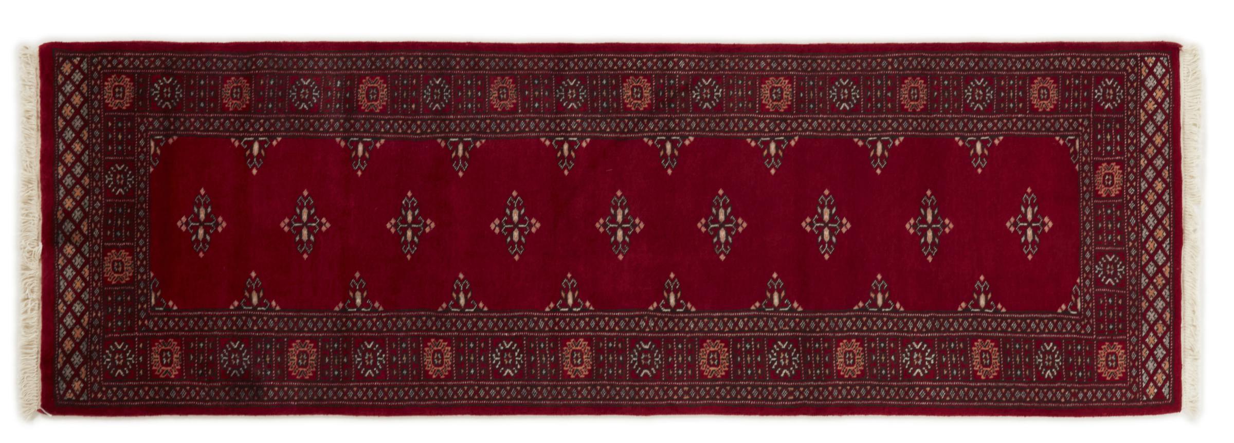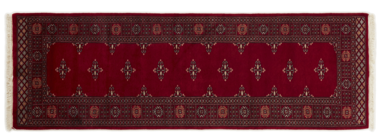 Una gran parte de la producción de alfombras pakistaníes tiene lugar en las ciudades de Lahore y Karachi y sus alrededores. Muchos de los tejedores de alfombras de esa época huyeron a Pakistán durante la guerra con la India y se establecieron allí. Hoy en día, se conocen especialmente las alfombras anudadas a mano de Pakistán Bukhara. Al igual que las alfombras orientales afganas, las alfombras paquistaníes también son de colores oscuros y en su mayoría tienen tonos rojos. También el conocido patrón de pata de elefante (patrón octogonal repetido) se puede encontrar en un pakistaní.