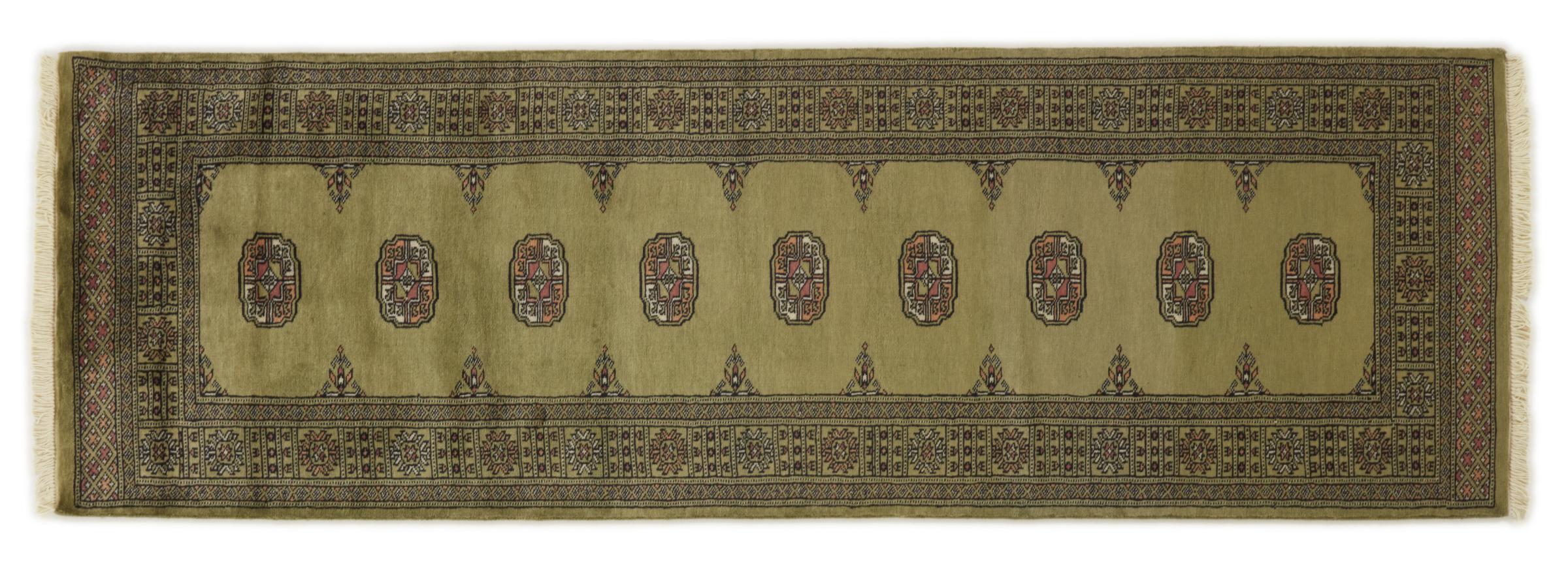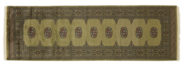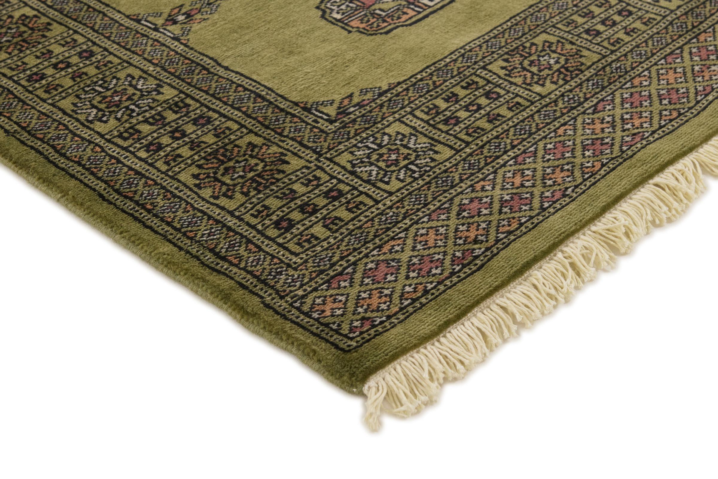 Una gran parte de la producción de alfombras pakistaníes tiene lugar en las ciudades de Lahore y Karachi y sus alrededores. Muchos de los tejedores de alfombras de esa época huyeron a Pakistán durante la guerra con la India y se establecieron allí. Hoy en día, se conocen especialmente las alfombras anudadas a mano de Pakistán Bukhara. Al igual que las alfombras orientales afganas, las alfombras paquistaníes también son de colores oscuros y en su mayoría tienen tonos rojos. También el conocido patrón de pata de elefante (patrón octogonal repetido) se puede encontrar en un pakistaní.