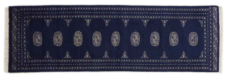 Una gran parte de la producción de alfombras pakistaníes tiene lugar en las ciudades de Lahore y Karachi y sus alrededores. Muchos de los tejedores de alfombras de esa época huyeron a Pakistán durante la guerra con la India y se establecieron allí. Hoy en día, se conocen especialmente las alfombras anudadas a mano de Pakistán Bukhara. Al igual que las alfombras orientales afganas, las alfombras paquistaníes también son de colores oscuros y en su mayoría tienen tonos rojos. También el conocido patrón de pata de elefante (patrón octogonal repetido) se puede encontrar en un pakistaní.