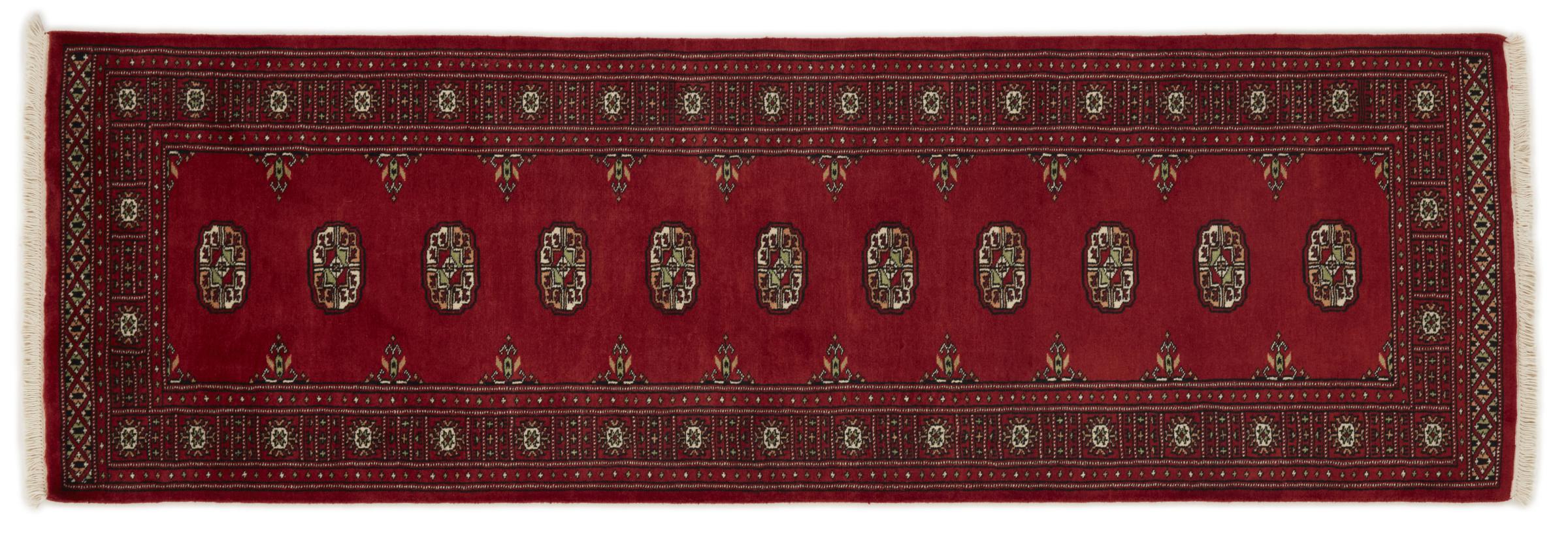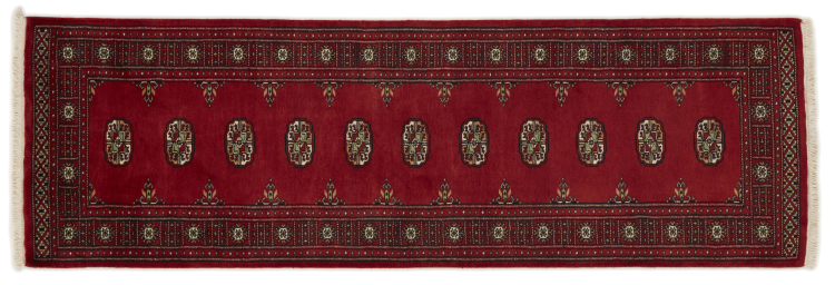 Una gran parte de la producción de alfombras pakistaníes tiene lugar en las ciudades de Lahore y Karachi y sus alrededores. Muchos de los tejedores de alfombras de esa época huyeron a Pakistán durante la guerra con la India y se establecieron allí. Hoy en día, se conocen especialmente las alfombras anudadas a mano de Pakistán Bukhara. Al igual que las alfombras orientales afganas, las alfombras paquistaníes también son de colores oscuros y en su mayoría tienen tonos rojos. También el conocido patrón de pata de elefante (patrón octogonal repetido) se puede encontrar en un pakistaní.