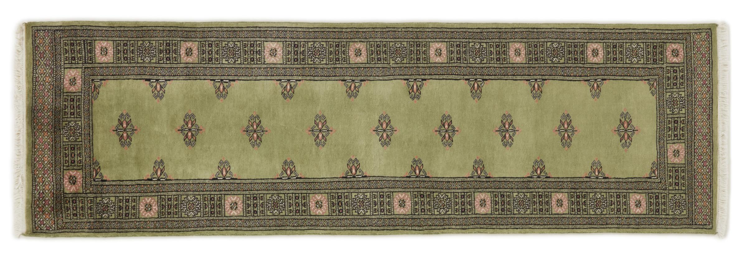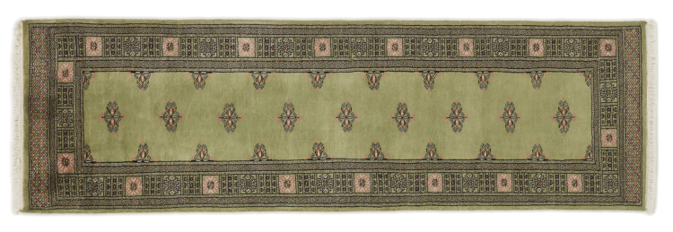 Una gran parte de la producción de alfombras pakistaníes tiene lugar en las ciudades de Lahore y Karachi y sus alrededores. Muchos de los tejedores de alfombras de esa época huyeron a Pakistán durante la guerra con la India y se establecieron allí. Hoy en día, se conocen especialmente las alfombras anudadas a mano de Pakistán Bukhara. Al igual que las alfombras orientales afganas, las alfombras paquistaníes también son de colores oscuros y en su mayoría tienen tonos rojos. También el conocido patrón de pata de elefante (patrón octogonal repetido) se puede encontrar en un pakistaní.