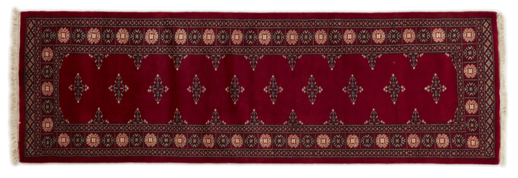 Una gran parte de la producción de alfombras pakistaníes tiene lugar en las ciudades de Lahore y Karachi y sus alrededores. Muchos de los tejedores de alfombras de esa época huyeron a Pakistán durante la guerra con la India y se establecieron allí. Hoy en día, se conocen especialmente las alfombras anudadas a mano de Pakistán Bukhara. Al igual que las alfombras orientales afganas, las alfombras paquistaníes también son de colores oscuros y en su mayoría tienen tonos rojos. También el conocido patrón de pata de elefante (patrón octogonal repetido) se puede encontrar en un pakistaní.