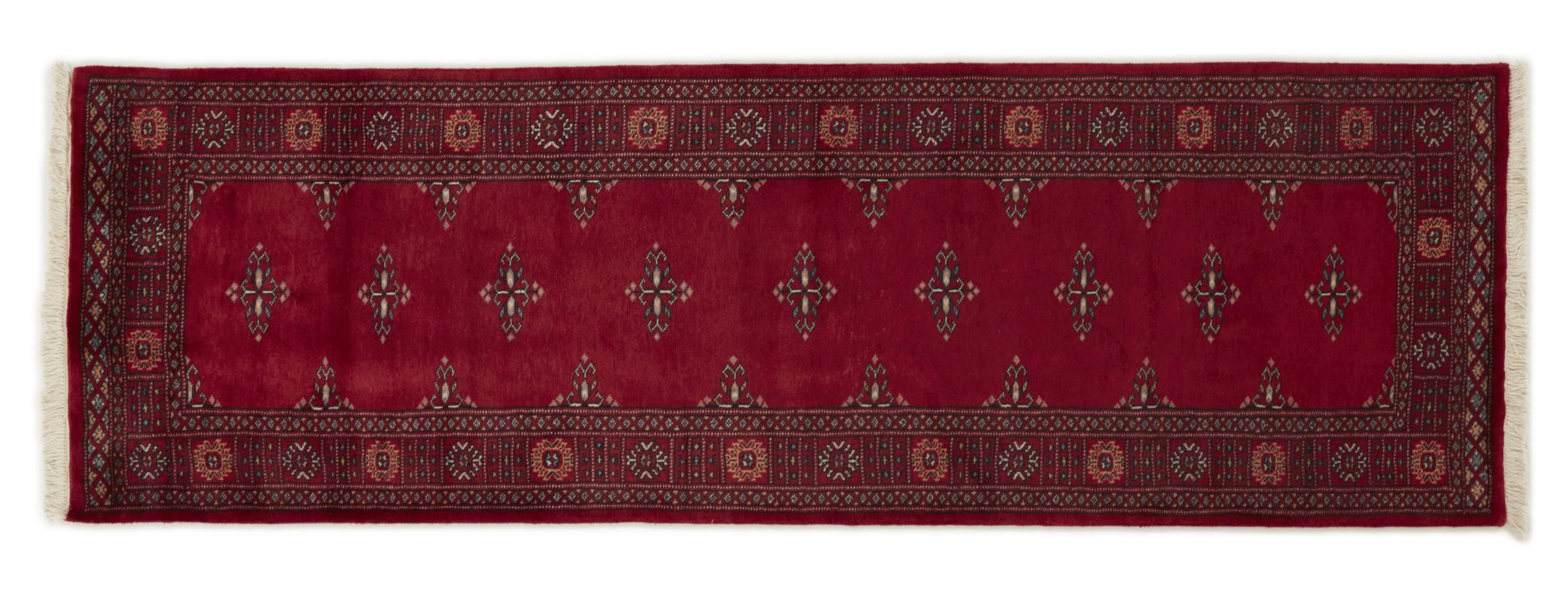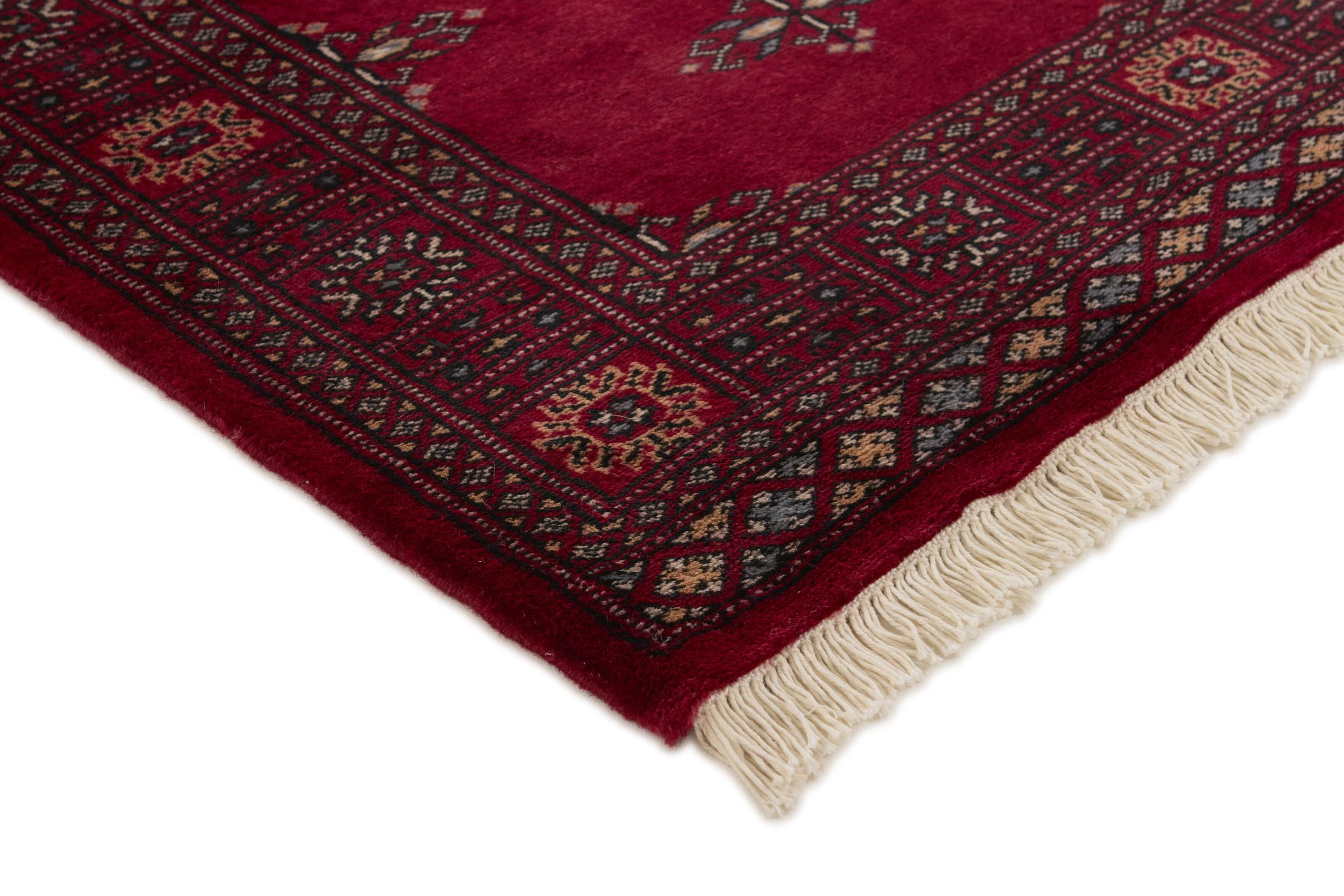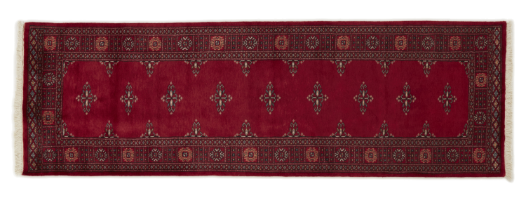 Una gran parte de la producción de alfombras pakistaníes tiene lugar en las ciudades de Lahore y Karachi y sus alrededores. Muchos de los tejedores de alfombras de esa época huyeron a Pakistán durante la guerra con la India y se establecieron allí. Hoy en día, se conocen especialmente las alfombras anudadas a mano de Pakistán Bukhara. Al igual que las alfombras orientales afganas, las alfombras paquistaníes también son de colores oscuros y en su mayoría tienen tonos rojos. También el conocido patrón de pata de elefante (patrón octogonal repetido) se puede encontrar en un pakistaní.