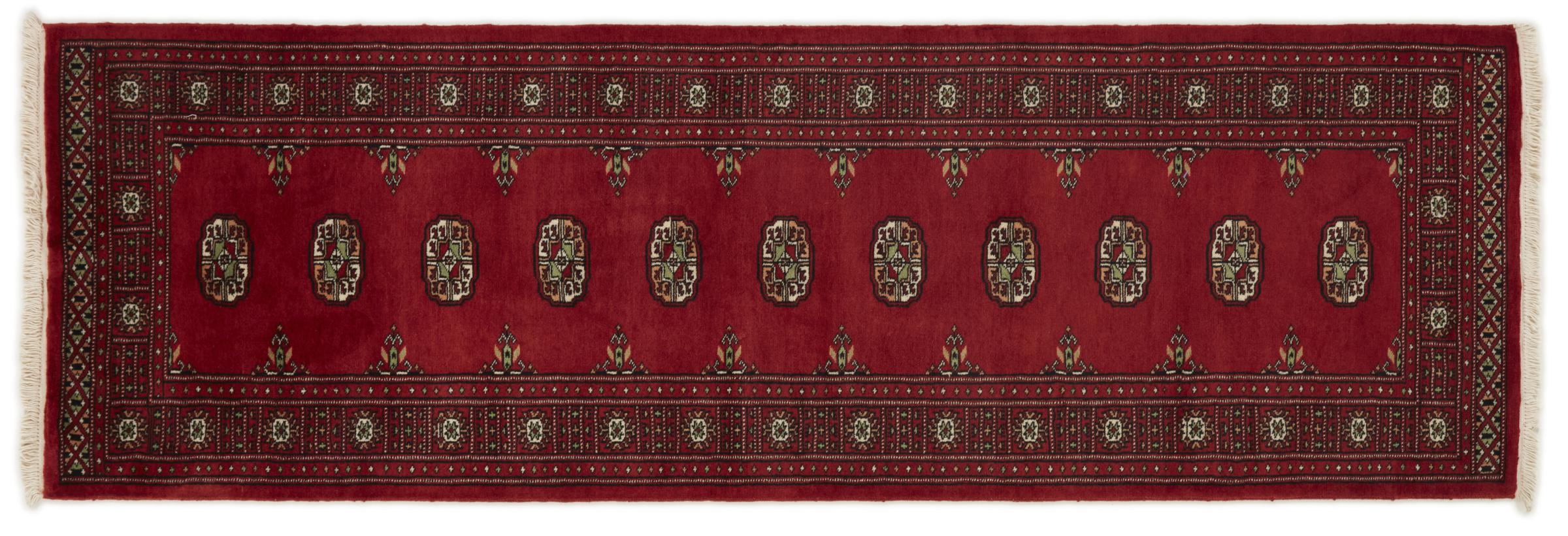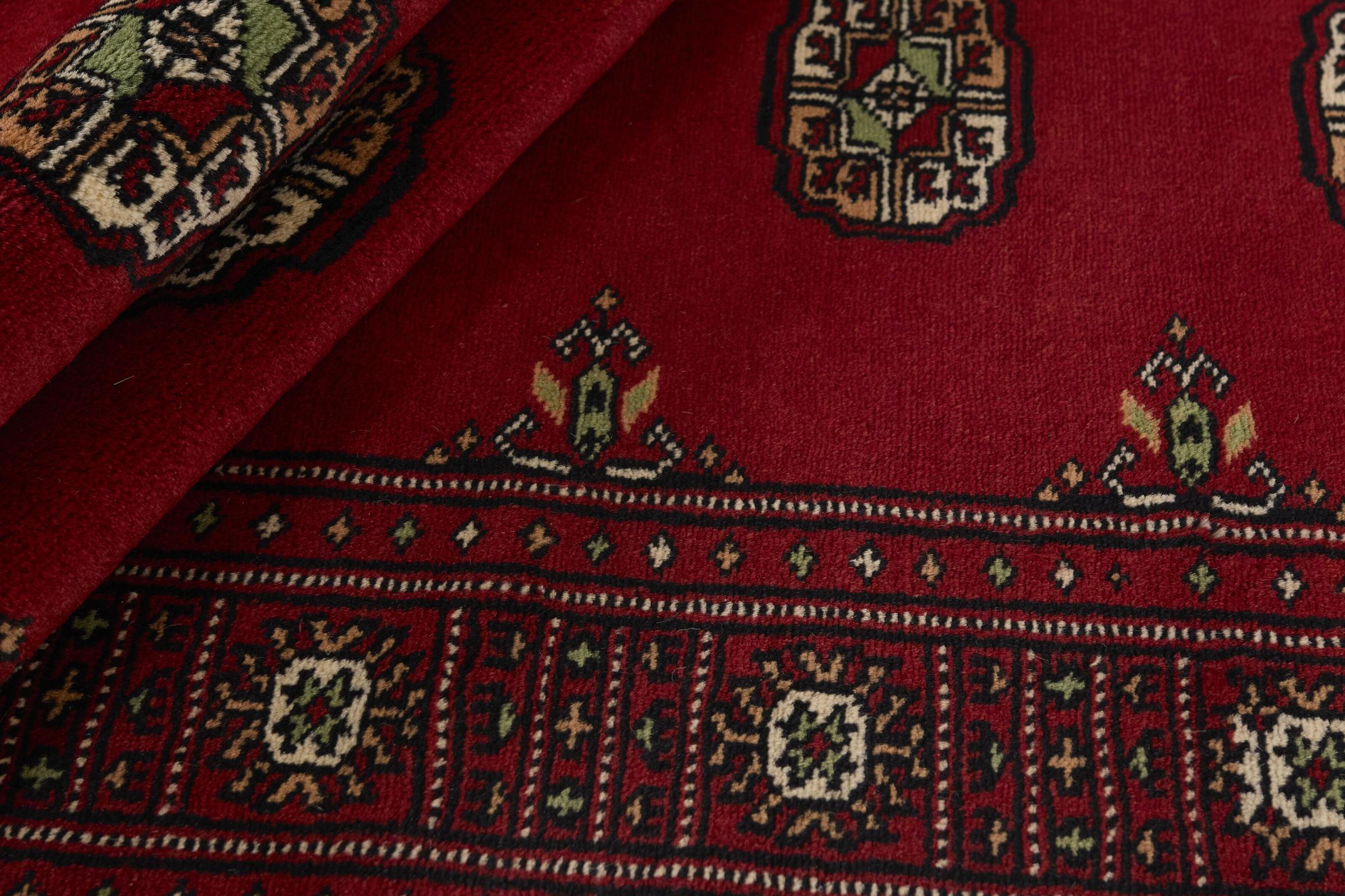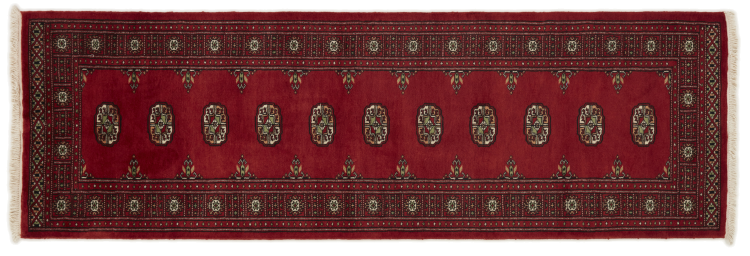 Una gran parte de la producción de alfombras pakistaníes tiene lugar en las ciudades de Lahore y Karachi y sus alrededores. Muchos de los tejedores de alfombras de esa época huyeron a Pakistán durante la guerra con la India y se establecieron allí. Hoy en día, se conocen especialmente las alfombras anudadas a mano de Pakistán Bukhara. Al igual que las alfombras orientales afganas, las alfombras paquistaníes también son de colores oscuros y en su mayoría tienen tonos rojos. También el conocido patrón de pata de elefante (patrón octogonal repetido) se puede encontrar en un pakistaní.