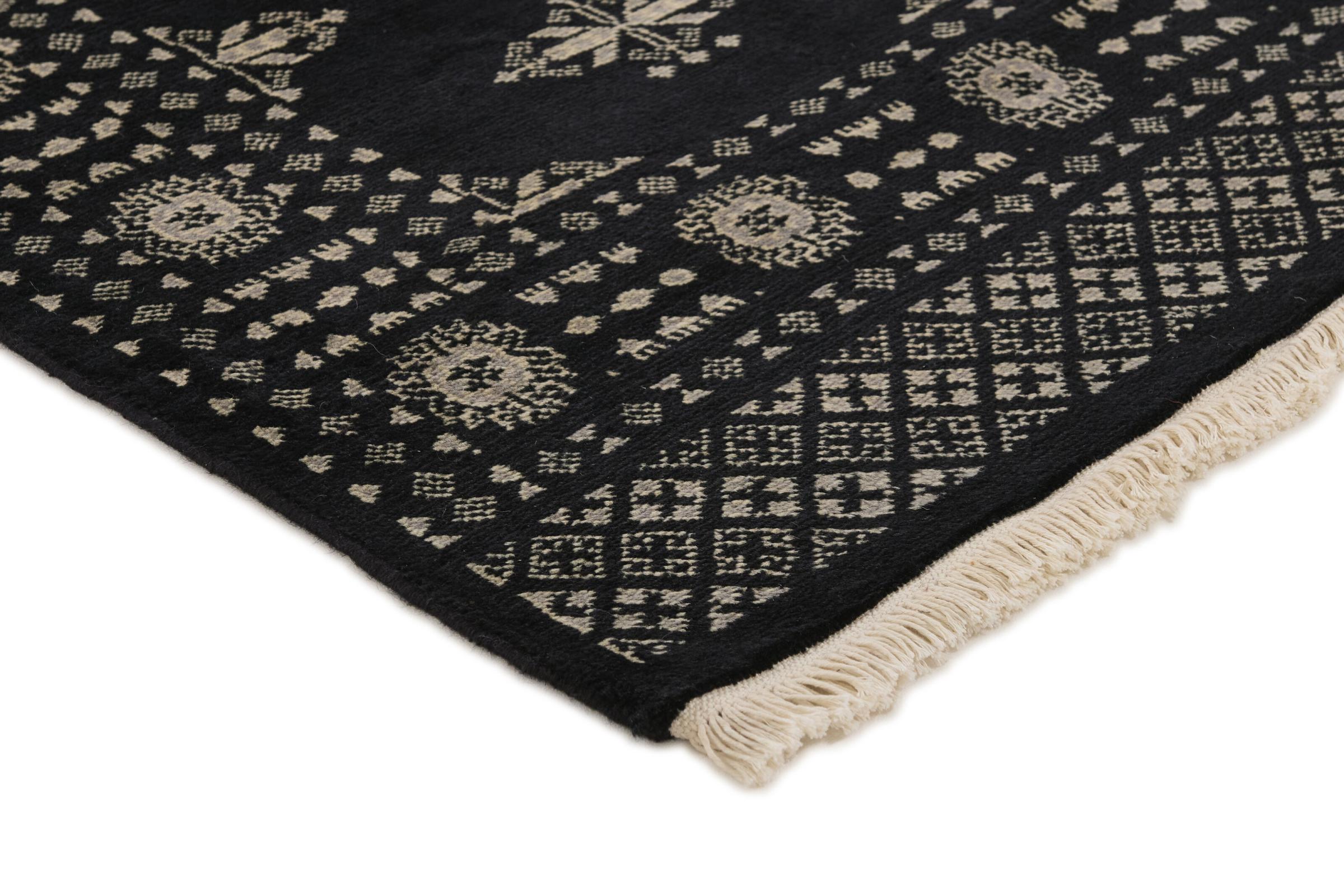 Esta alfombra anudada a mano procedente de Pakistán tiene rasgos muy típicos. Los ornamentos redondos se repiten en el suelo y conforman el tipo de alfombra. 2Ply y 3Ply son diferencias en la densidad de anudado de las alfombras. Una 3Ply suele tener un anudado más denso y, por tanto, es más costosa de producir y algo más robusta. Estas hermosas alfombras son populares por sus fascinantes colores y su diseño sereno.