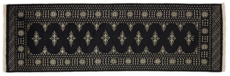 Una gran parte de la producción de alfombras pakistaníes tiene lugar en las ciudades de Lahore y Karachi y sus alrededores. Muchos de los tejedores de alfombras de esa época huyeron a Pakistán durante la guerra con la India y se establecieron allí. Hoy en día, se conocen especialmente las alfombras anudadas a mano de Pakistán Bukhara. Al igual que las alfombras orientales afganas, las alfombras paquistaníes también son de colores oscuros y en su mayoría tienen tonos rojos. También el conocido patrón de pata de elefante (patrón octogonal repetido) se puede encontrar en un pakistaní.