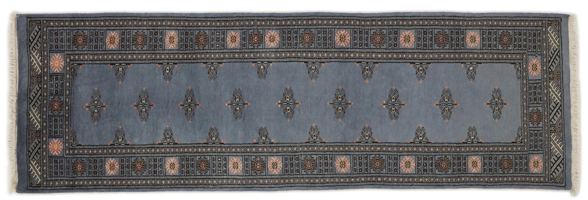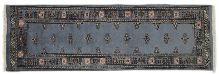 Una gran parte de la producción de alfombras pakistaníes tiene lugar en las ciudades de Lahore y Karachi y sus alrededores. Muchos de los tejedores de alfombras de esa época huyeron a Pakistán durante la guerra con la India y se establecieron allí. Hoy en día, se conocen especialmente las alfombras anudadas a mano de Pakistán Bukhara. Al igual que las alfombras orientales afganas, las alfombras paquistaníes también son de colores oscuros y en su mayoría tienen tonos rojos. También el conocido patrón de pata de elefante (patrón octogonal repetido) se puede encontrar en un pakistaní.