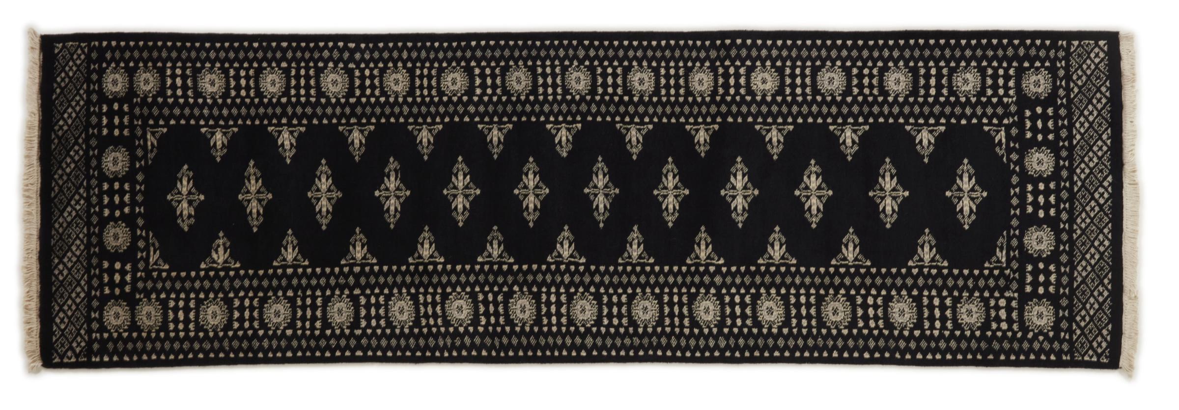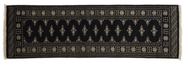 Una gran parte de la producción de alfombras pakistaníes tiene lugar en las ciudades de Lahore y Karachi y sus alrededores. Muchos de los tejedores de alfombras de esa época huyeron a Pakistán durante la guerra con la India y se establecieron allí. Hoy en día, se conocen especialmente las alfombras anudadas a mano de Pakistán Bukhara. Al igual que las alfombras orientales afganas, las alfombras paquistaníes también son de colores oscuros y en su mayoría tienen tonos rojos. También el conocido patrón de pata de elefante (patrón octogonal repetido) se puede encontrar en un pakistaní.