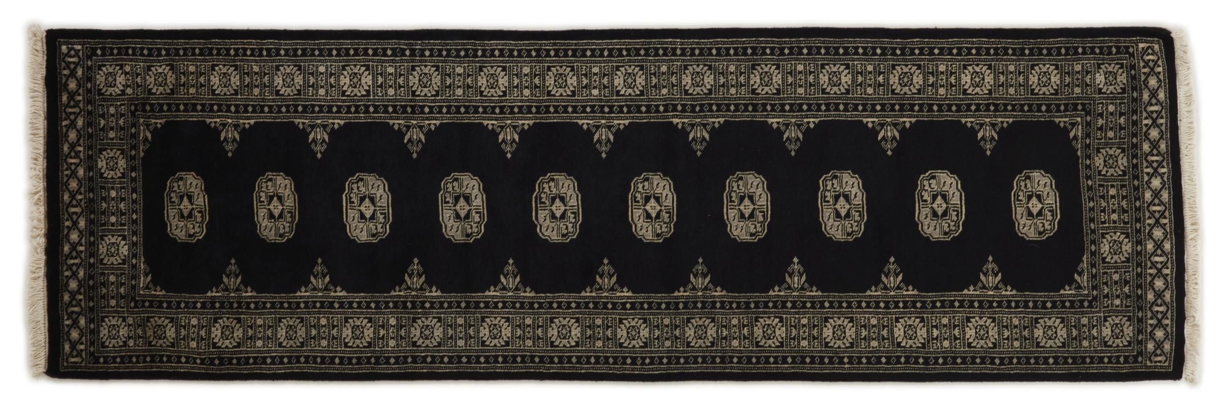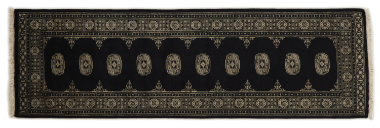 Una gran parte de la producción de alfombras pakistaníes tiene lugar en las ciudades de Lahore y Karachi y sus alrededores. Muchos de los tejedores de alfombras de esa época huyeron a Pakistán durante la guerra con la India y se establecieron allí. Hoy en día, se conocen especialmente las alfombras anudadas a mano de Pakistán Bukhara. Al igual que las alfombras orientales afganas, las alfombras paquistaníes también son de colores oscuros y en su mayoría tienen tonos rojos. También el conocido patrón de pata de elefante (patrón octogonal repetido) se puede encontrar en un pakistaní.