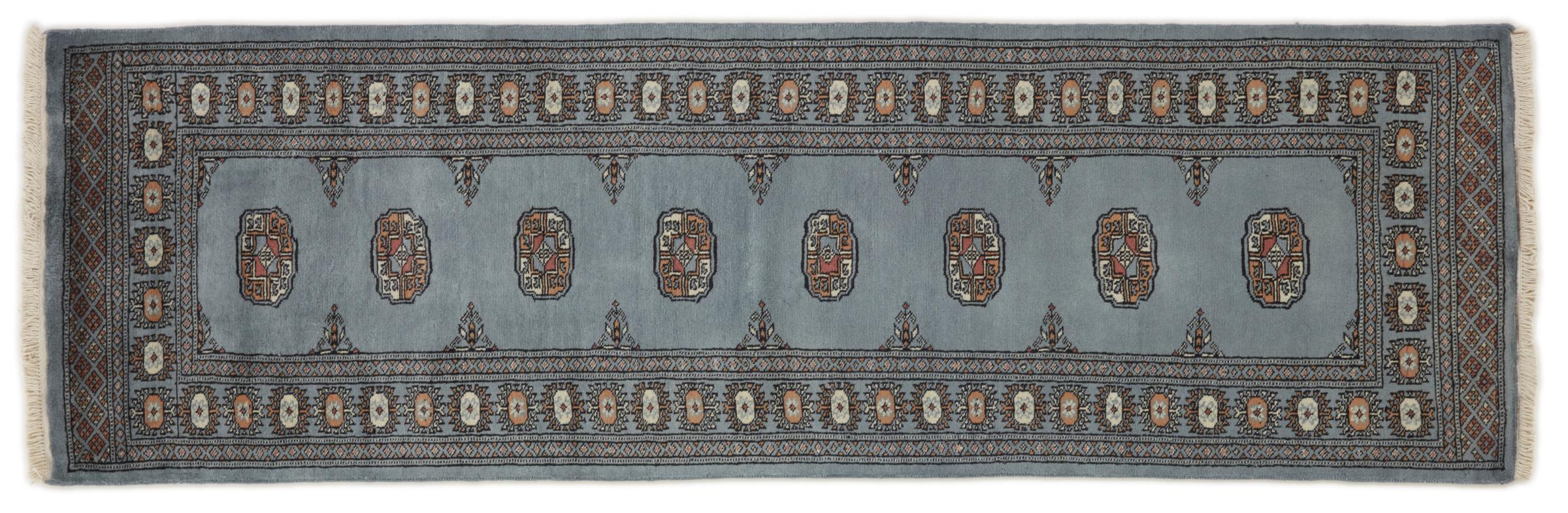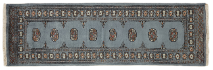 Una gran parte de la producción de alfombras pakistaníes tiene lugar en las ciudades de Lahore y Karachi y sus alrededores. Muchos de los tejedores de alfombras de esa época huyeron a Pakistán durante la guerra con la India y se establecieron allí. Hoy en día, se conocen especialmente las alfombras anudadas a mano de Pakistán Bukhara. Al igual que las alfombras orientales afganas, las alfombras paquistaníes también son de colores oscuros y en su mayoría tienen tonos rojos. También el conocido patrón de pata de elefante (patrón octogonal repetido) se puede encontrar en un pakistaní.