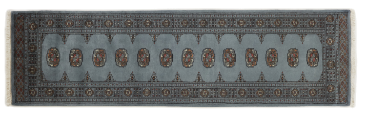 Una gran parte de la producción de alfombras pakistaníes tiene lugar en las ciudades de Lahore y Karachi y sus alrededores. Muchos de los tejedores de alfombras de esa época huyeron a Pakistán durante la guerra con la India y se establecieron allí. Hoy en día, se conocen especialmente las alfombras anudadas a mano de Pakistán Bukhara. Al igual que las alfombras orientales afganas, las alfombras paquistaníes también son de colores oscuros y en su mayoría tienen tonos rojos. También el conocido patrón de pata de elefante (patrón octogonal repetido) se puede encontrar en un pakistaní.