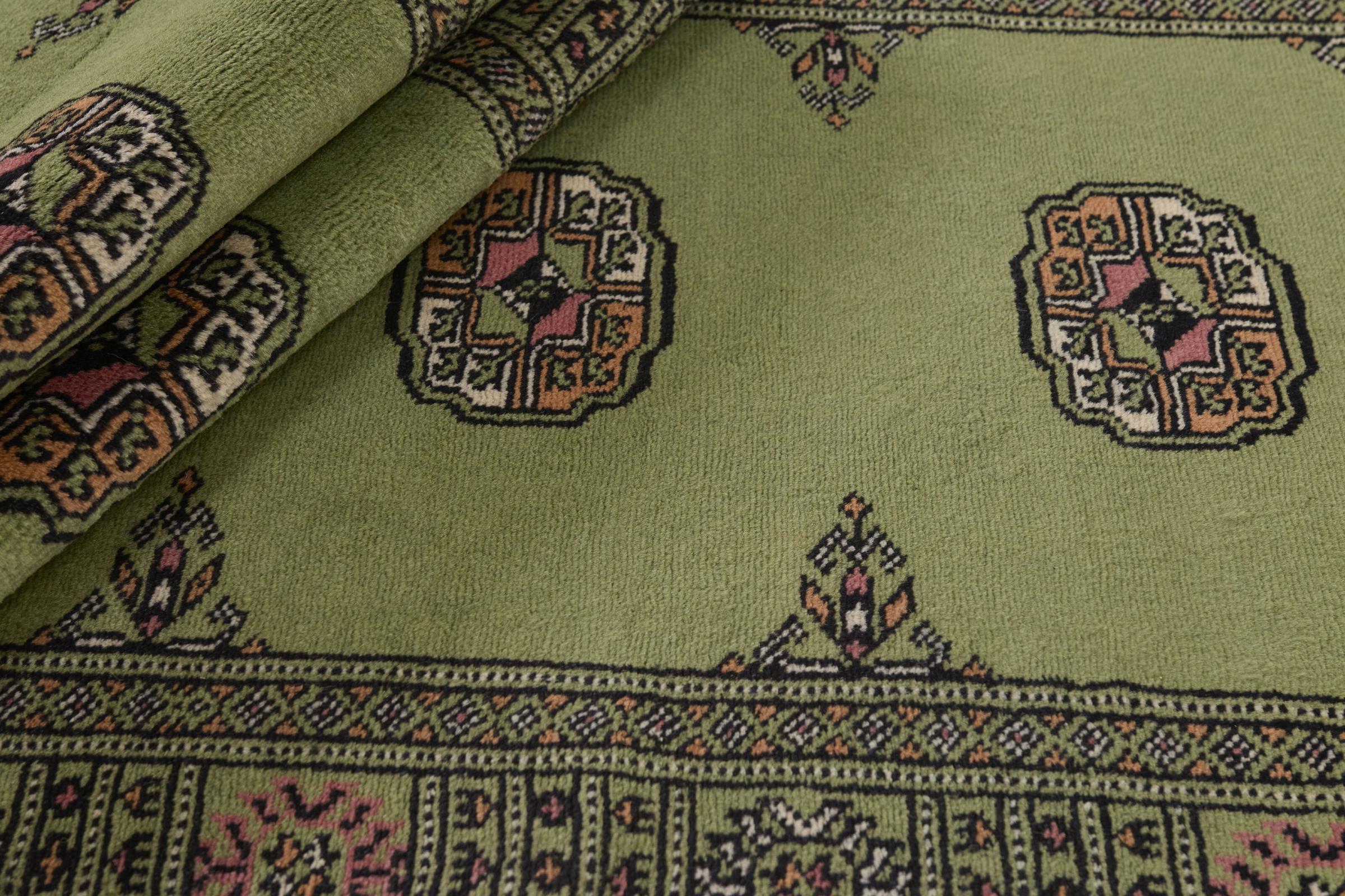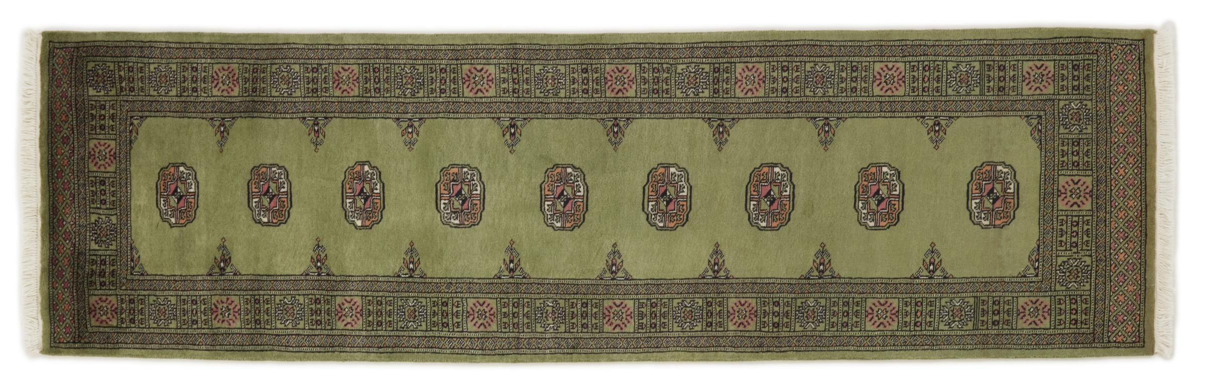 Una gran parte de la producción de alfombras pakistaníes tiene lugar en las ciudades de Lahore y Karachi y sus alrededores. Muchos de los tejedores de alfombras de esa época huyeron a Pakistán durante la guerra con la India y se establecieron allí. Hoy en día, se conocen especialmente las alfombras anudadas a mano de Pakistán Bukhara. Al igual que las alfombras orientales afganas, las alfombras paquistaníes también son de colores oscuros y en su mayoría tienen tonos rojos. También el conocido patrón de pata de elefante (patrón octogonal repetido) se puede encontrar en un pakistaní.