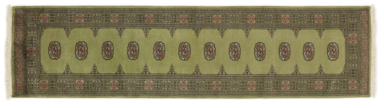 Una gran parte de la producción de alfombras pakistaníes tiene lugar en las ciudades de Lahore y Karachi y sus alrededores. Muchos de los tejedores de alfombras de esa época huyeron a Pakistán durante la guerra con la India y se establecieron allí. Hoy en día, se conocen especialmente las alfombras anudadas a mano de Pakistán Bukhara. Al igual que las alfombras orientales afganas, las alfombras paquistaníes también son de colores oscuros y en su mayoría tienen tonos rojos. También el conocido patrón de pata de elefante (patrón octogonal repetido) se puede encontrar en un pakistaní.