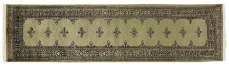 Una gran parte de la producción de alfombras pakistaníes tiene lugar en las ciudades de Lahore y Karachi y sus alrededores. Muchos de los tejedores de alfombras de esa época huyeron a Pakistán durante la guerra con la India y se establecieron allí. Hoy en día, se conocen especialmente las alfombras anudadas a mano de Pakistán Bukhara. Al igual que las alfombras orientales afganas, las alfombras paquistaníes también son de colores oscuros y en su mayoría tienen tonos rojos. También el conocido patrón de pata de elefante (patrón octogonal repetido) se puede encontrar en un pakistaní.