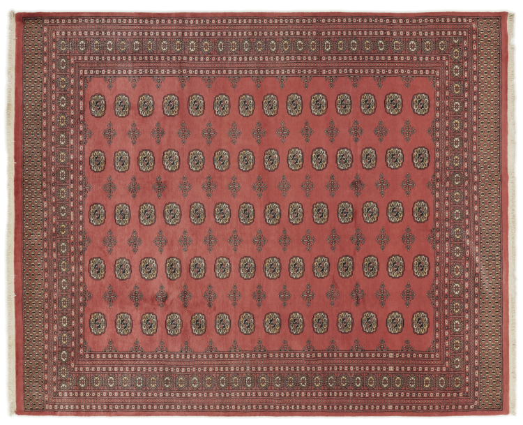 Una gran parte de la producción de alfombras pakistaníes tiene lugar en las ciudades de Lahore y Karachi y sus alrededores. Muchos de los tejedores de alfombras de esa época huyeron a Pakistán durante la guerra con la India y se establecieron allí. Hoy en día, se conocen especialmente las alfombras anudadas a mano de Pakistán Bukhara. Al igual que las alfombras orientales afganas, las alfombras paquistaníes también son de colores oscuros y en su mayoría tienen tonos rojos. También el conocido patrón de pata de elefante (patrón octogonal repetido) se puede encontrar en un pakistaní.