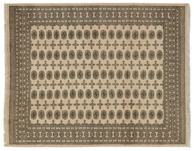 Una gran parte de la producción de alfombras pakistaníes tiene lugar en las ciudades de Lahore y Karachi y sus alrededores. Muchos de los tejedores de alfombras de esa época huyeron a Pakistán durante la guerra con la India y se establecieron allí. Hoy en día, se conocen especialmente las alfombras anudadas a mano de Pakistán Bukhara. Al igual que las alfombras orientales afganas, las alfombras paquistaníes también son de colores oscuros y en su mayoría tienen tonos rojos. También el conocido patrón de pata de elefante (patrón octogonal repetido) se puede encontrar en un pakistaní.