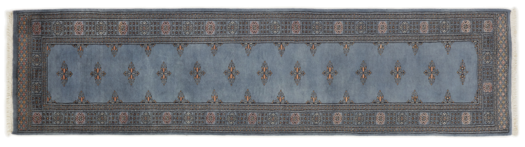 Una gran parte de la producción de alfombras pakistaníes tiene lugar en las ciudades de Lahore y Karachi y sus alrededores. Muchos de los tejedores de alfombras de esa época huyeron a Pakistán durante la guerra con la India y se establecieron allí. Hoy en día, se conocen especialmente las alfombras anudadas a mano de Pakistán Bukhara. Al igual que las alfombras orientales afganas, las alfombras paquistaníes también son de colores oscuros y en su mayoría tienen tonos rojos. También el conocido patrón de pata de elefante (patrón octogonal repetido) se puede encontrar en un pakistaní.