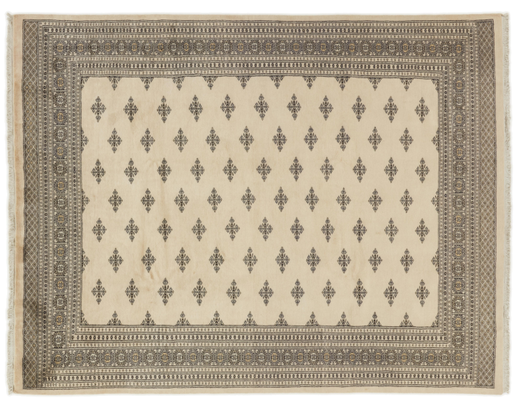 Una gran parte de la producción de alfombras pakistaníes tiene lugar en las ciudades de Lahore y Karachi y sus alrededores. Muchos de los tejedores de alfombras de esa época huyeron a Pakistán durante la guerra con la India y se establecieron allí. Hoy en día, se conocen especialmente las alfombras anudadas a mano de Pakistán Bukhara. Al igual que las alfombras orientales afganas, las alfombras paquistaníes también son de colores oscuros y en su mayoría tienen tonos rojos. También el conocido patrón de pata de elefante (patrón octogonal repetido) se puede encontrar en un pakistaní.