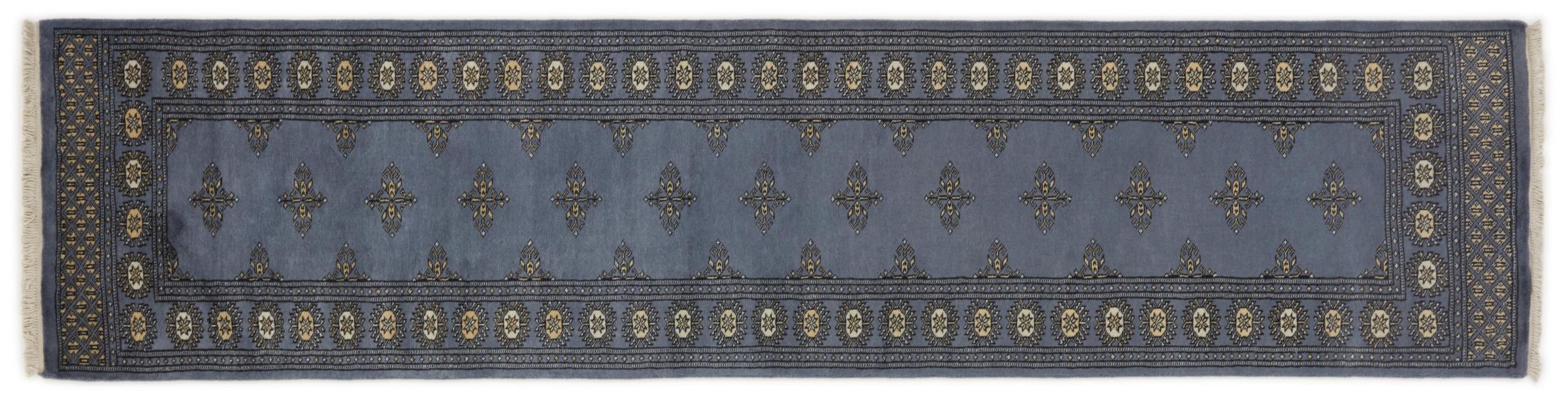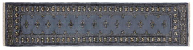 Una gran parte de la producción de alfombras pakistaníes tiene lugar en las ciudades de Lahore y Karachi y sus alrededores. Muchos de los tejedores de alfombras de esa época huyeron a Pakistán durante la guerra con la India y se establecieron allí. Hoy en día, se conocen especialmente las alfombras anudadas a mano de Pakistán Bukhara. Al igual que las alfombras orientales afganas, las alfombras paquistaníes también son de colores oscuros y en su mayoría tienen tonos rojos. También el conocido patrón de pata de elefante (patrón octogonal repetido) se puede encontrar en un pakistaní.