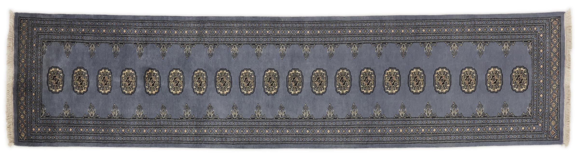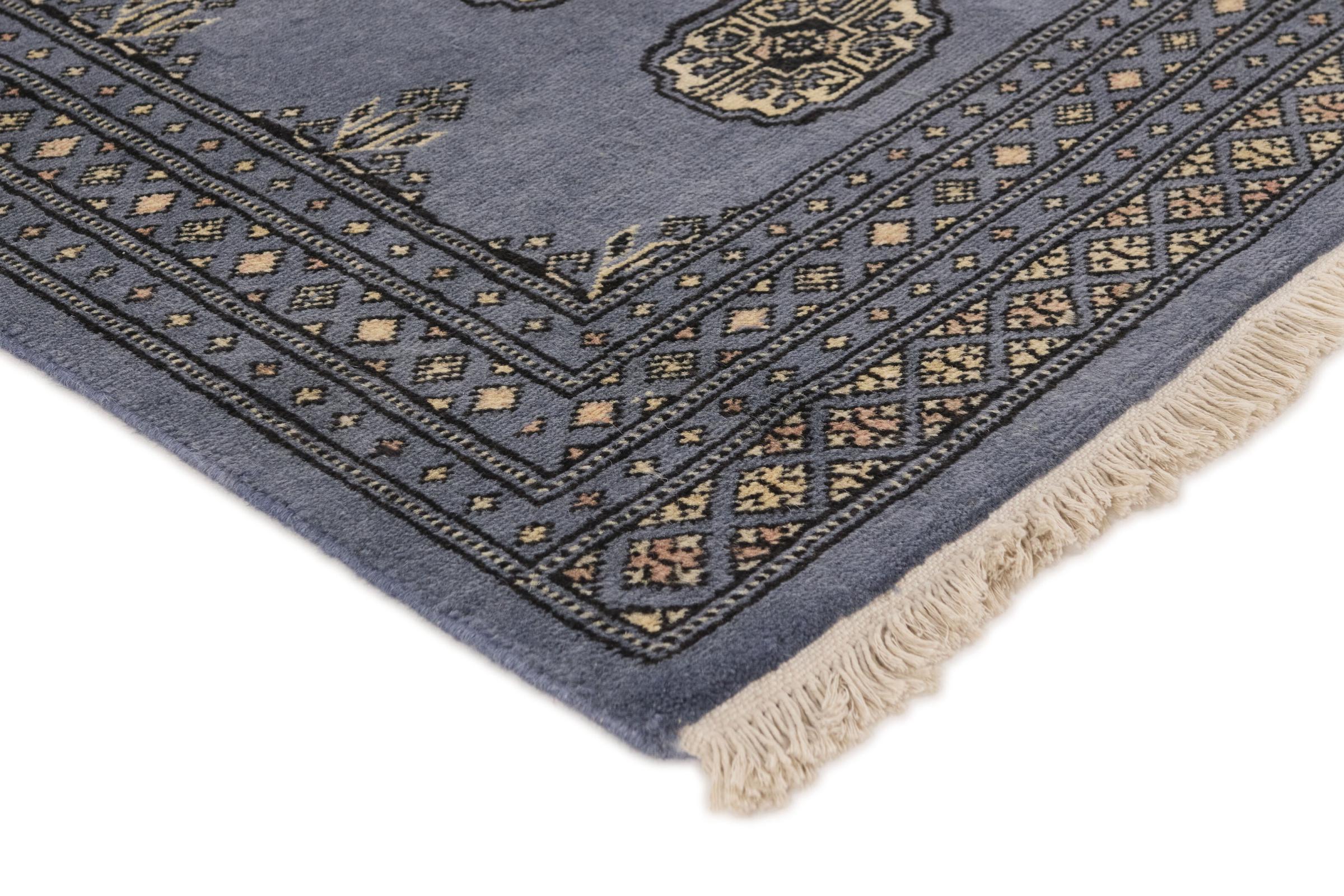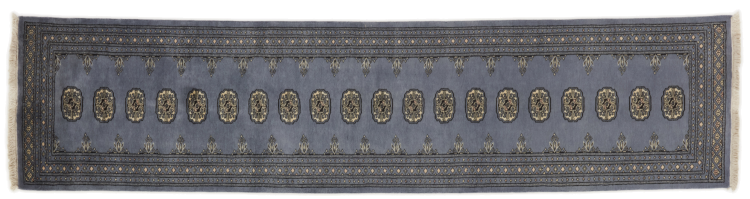 Una gran parte de la producción de alfombras pakistaníes tiene lugar en las ciudades de Lahore y Karachi y sus alrededores. Muchos de los tejedores de alfombras de esa época huyeron a Pakistán durante la guerra con la India y se establecieron allí. Hoy en día, se conocen especialmente las alfombras anudadas a mano de Pakistán Bukhara. Al igual que las alfombras orientales afganas, las alfombras paquistaníes también son de colores oscuros y en su mayoría tienen tonos rojos. También el conocido patrón de pata de elefante (patrón octogonal repetido) se puede encontrar en un pakistaní.