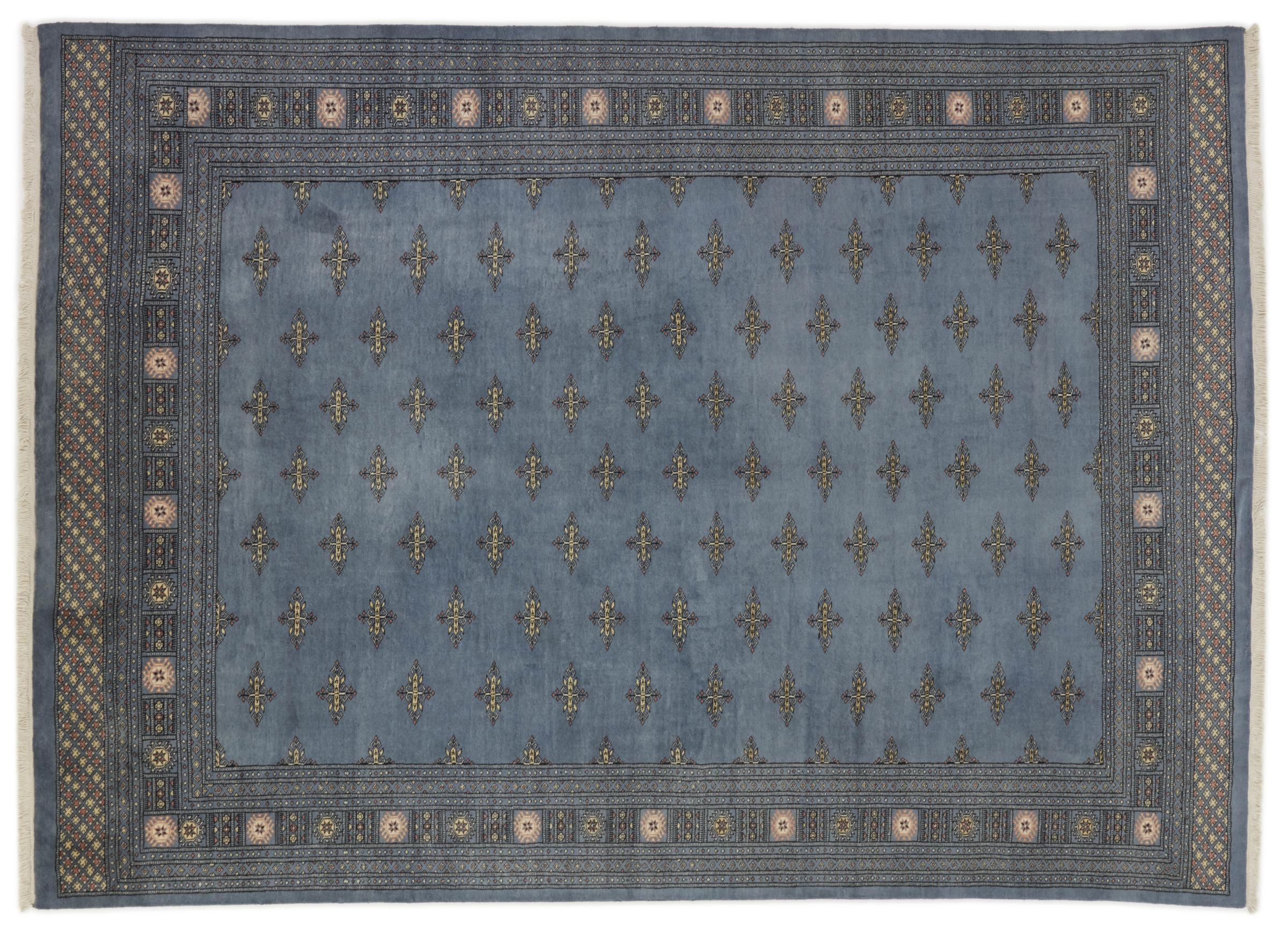 Una gran parte de la producción de alfombras pakistaníes tiene lugar en las ciudades de Lahore y Karachi y sus alrededores. Muchos de los tejedores de alfombras de esa época huyeron a Pakistán durante la guerra con la India y se establecieron allí. Hoy en día, se conocen especialmente las alfombras anudadas a mano de Pakistán Bukhara. Al igual que las alfombras orientales afganas, las alfombras paquistaníes también son de colores oscuros y en su mayoría tienen tonos rojos. También el conocido patrón de pata de elefante (patrón octogonal repetido) se puede encontrar en un pakistaní.