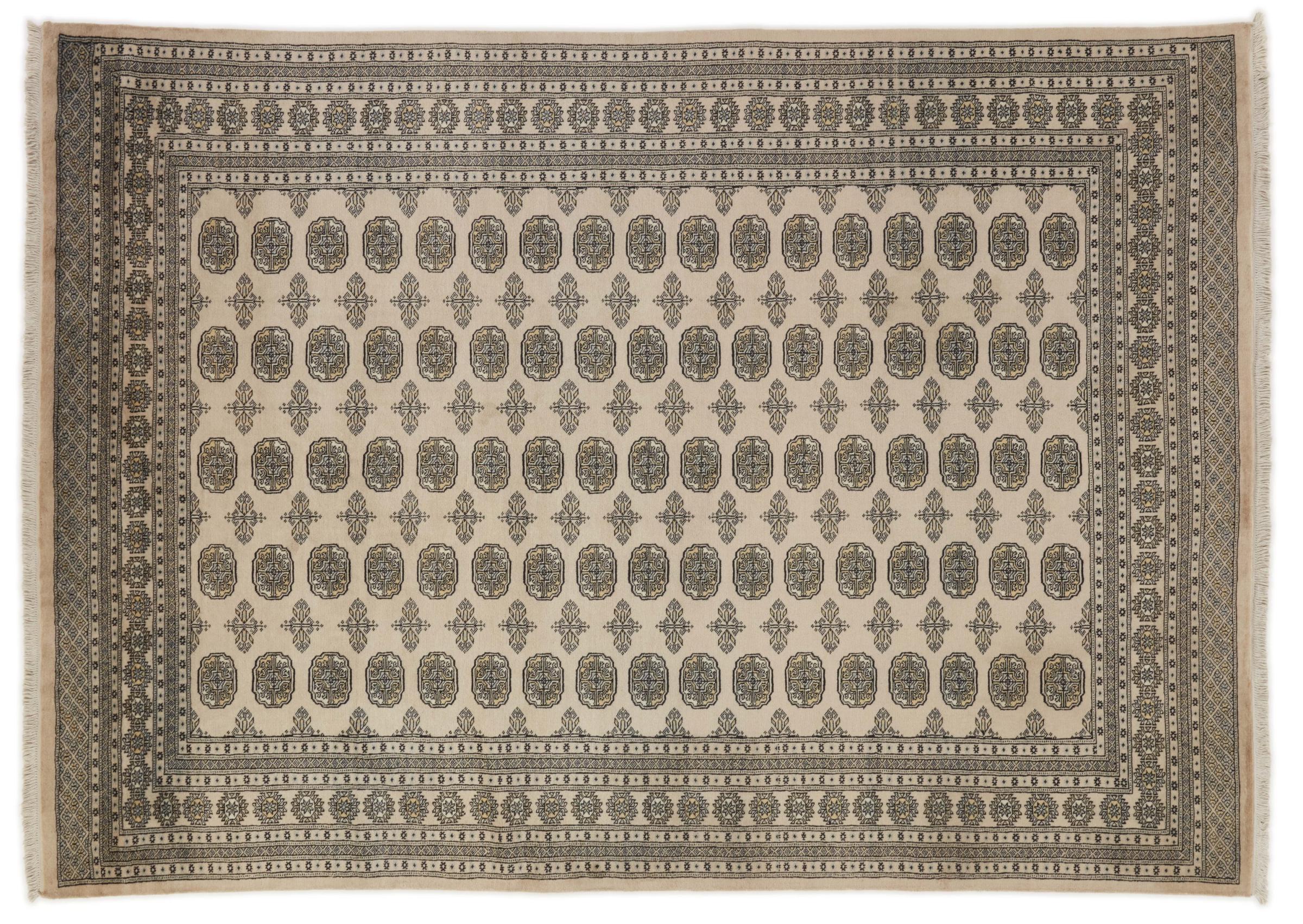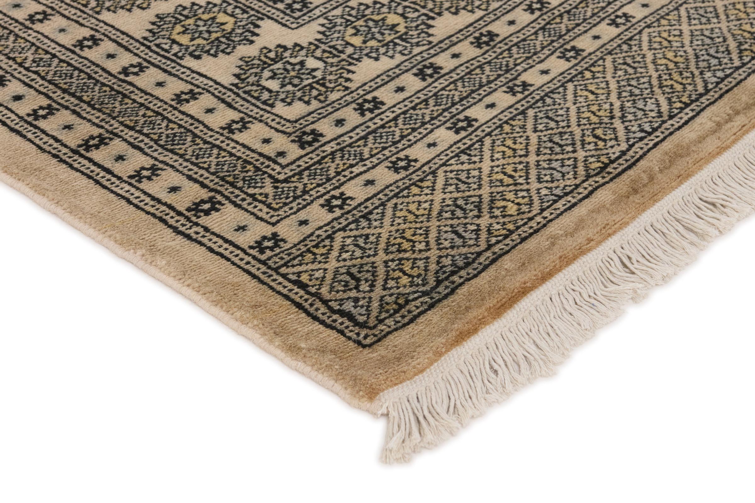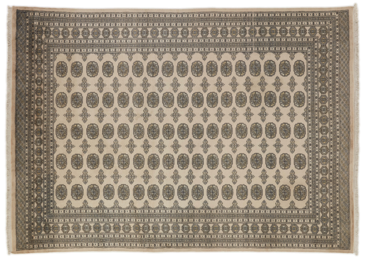 Una gran parte de la producción de alfombras pakistaníes tiene lugar en las ciudades de Lahore y Karachi y sus alrededores. Muchos de los tejedores de alfombras de esa época huyeron a Pakistán durante la guerra con la India y se establecieron allí. Hoy en día, se conocen especialmente las alfombras anudadas a mano de Pakistán Bukhara. Al igual que las alfombras orientales afganas, las alfombras paquistaníes también son de colores oscuros y en su mayoría tienen tonos rojos. También el conocido patrón de pata de elefante (patrón octogonal repetido) se puede encontrar en un pakistaní.
