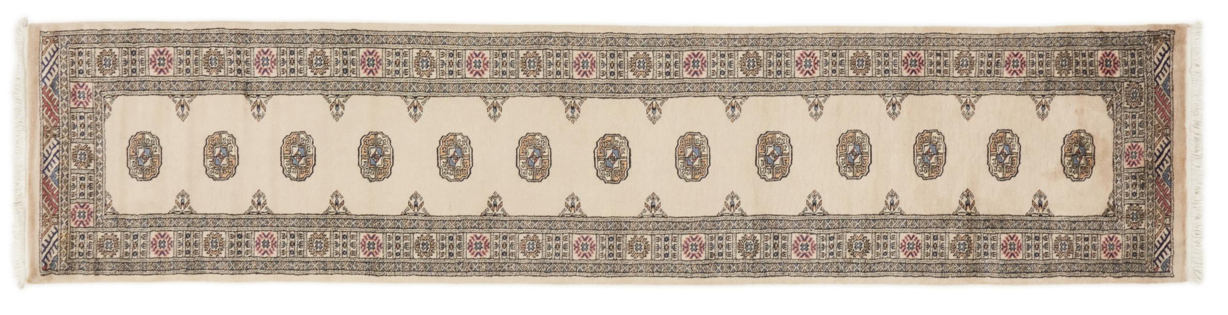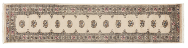 Una gran parte de la producción de alfombras pakistaníes tiene lugar en las ciudades de Lahore y Karachi y sus alrededores. Muchos de los tejedores de alfombras de esa época huyeron a Pakistán durante la guerra con la India y se establecieron allí. Hoy en día, se conocen especialmente las alfombras anudadas a mano de Pakistán Bukhara. Al igual que las alfombras orientales afganas, las alfombras paquistaníes también son de colores oscuros y en su mayoría tienen tonos rojos. También el conocido patrón de pata de elefante (patrón octogonal repetido) se puede encontrar en un pakistaní.