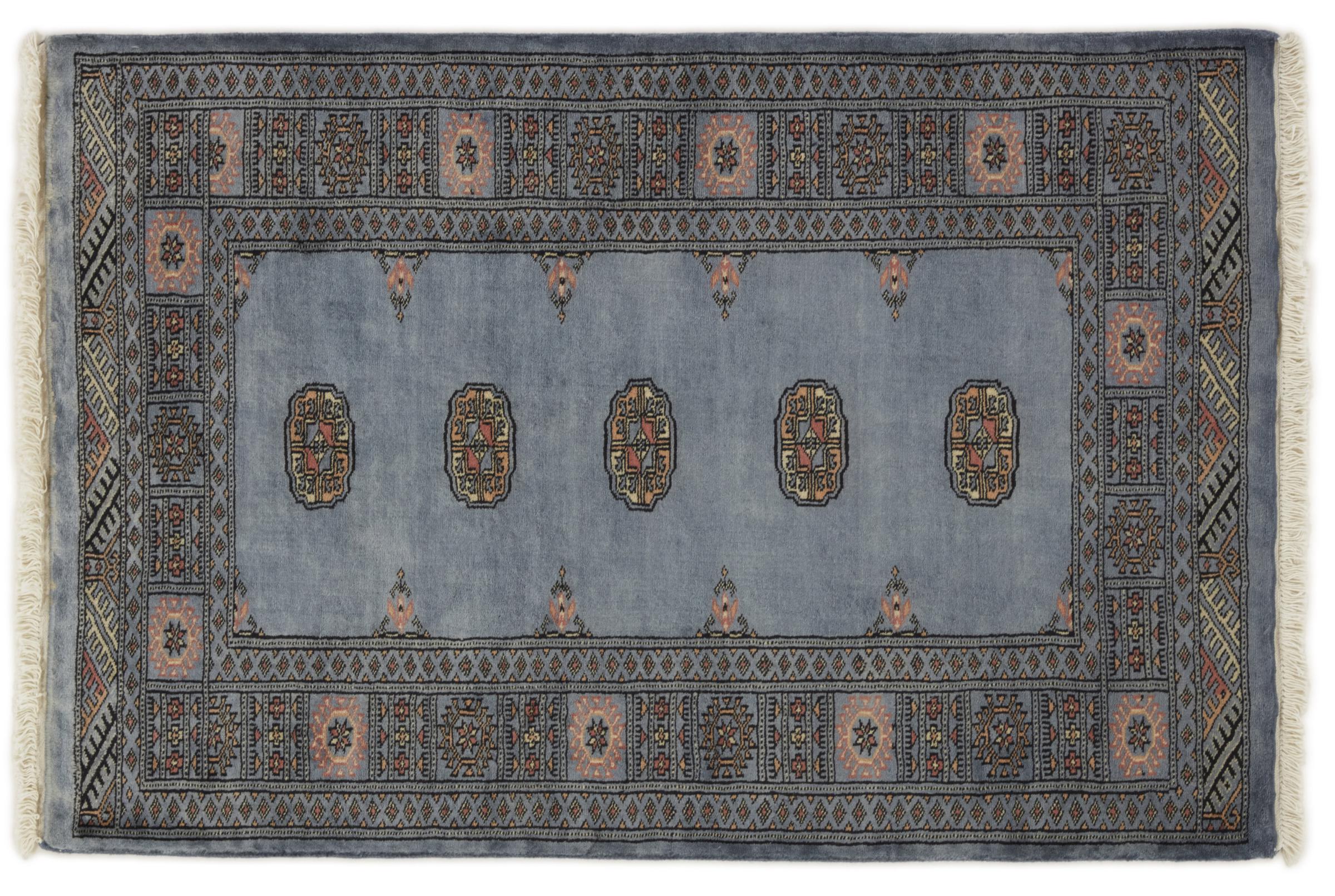 Una gran parte de la producción de alfombras pakistaníes tiene lugar en las ciudades de Lahore y Karachi y sus alrededores. Muchos de los tejedores de alfombras de esa época huyeron a Pakistán durante la guerra con la India y se establecieron allí. Hoy en día, se conocen especialmente las alfombras anudadas a mano de Pakistán Bukhara. Al igual que las alfombras orientales afganas, las alfombras paquistaníes también son de colores oscuros y en su mayoría tienen tonos rojos. También el conocido patrón de pata de elefante (patrón octogonal repetido) se puede encontrar en un pakistaní.