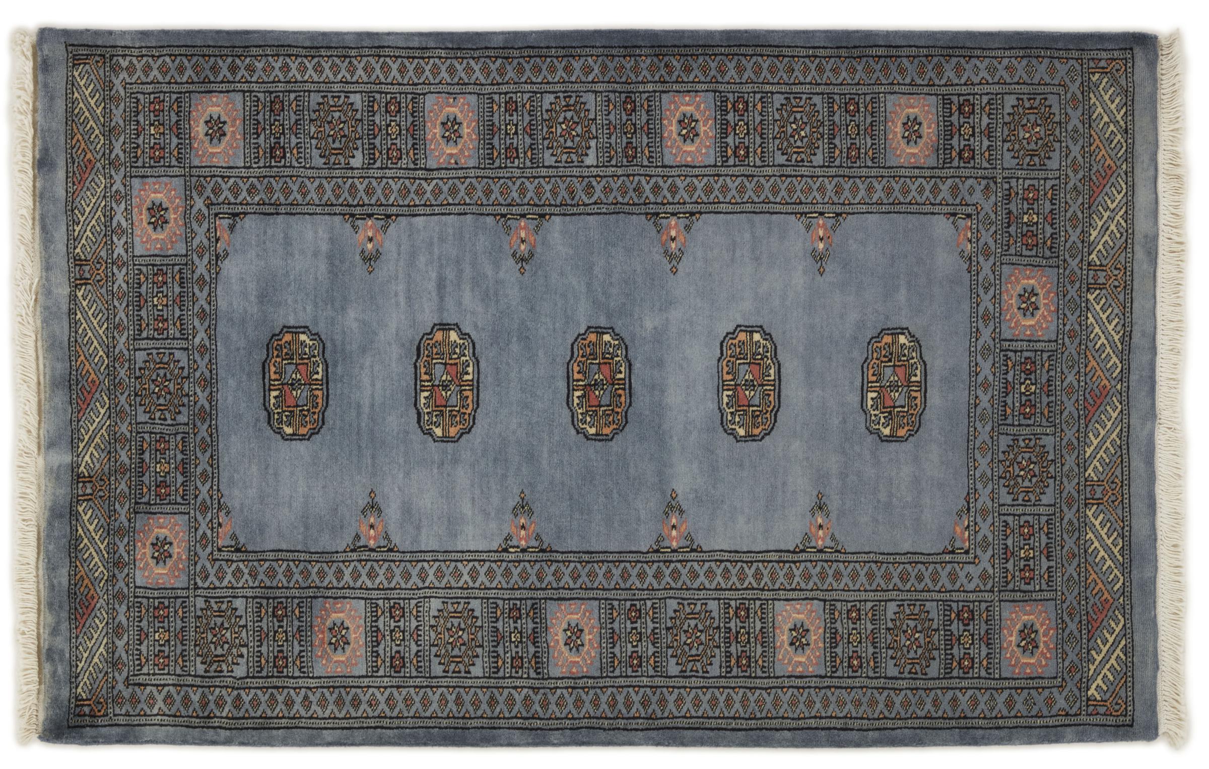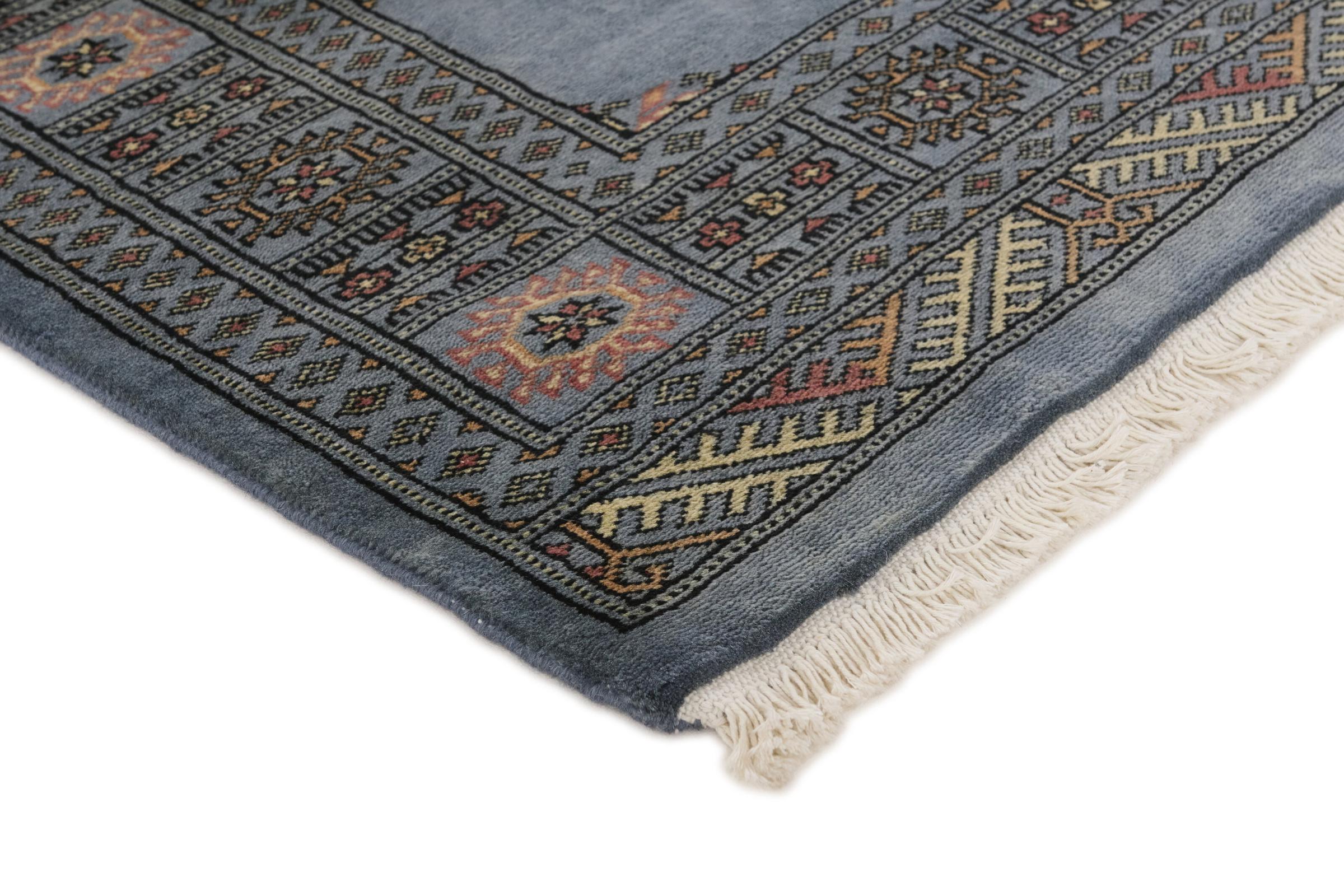 Una gran parte de la producción de alfombras pakistaníes tiene lugar en las ciudades de Lahore y Karachi y sus alrededores. Muchos de los tejedores de alfombras de esa época huyeron a Pakistán durante la guerra con la India y se establecieron allí. Hoy en día, se conocen especialmente las alfombras anudadas a mano de Pakistán Bukhara. Al igual que las alfombras orientales afganas, las alfombras paquistaníes también son de colores oscuros y en su mayoría tienen tonos rojos. También el conocido patrón de pata de elefante (patrón octogonal repetido) se puede encontrar en un pakistaní.