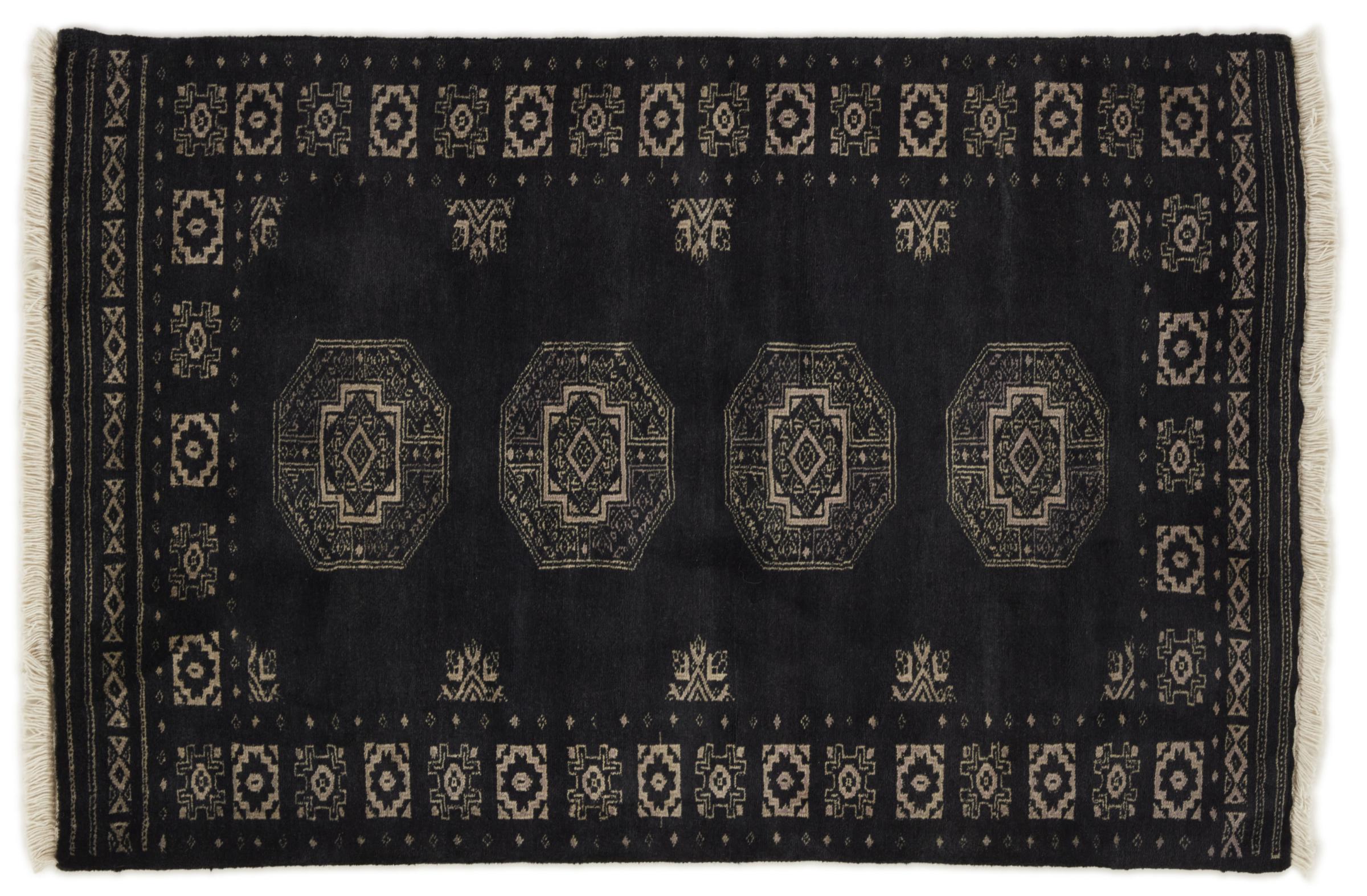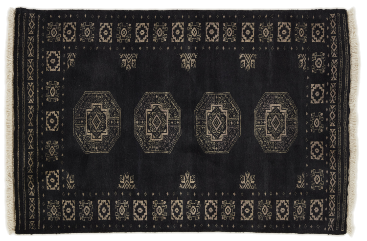 Una gran parte de la producción de alfombras pakistaníes tiene lugar en las ciudades de Lahore y Karachi y sus alrededores. Muchos de los tejedores de alfombras de esa época huyeron a Pakistán durante la guerra con la India y se establecieron allí. Hoy en día, se conocen especialmente las alfombras anudadas a mano de Pakistán Bukhara. Al igual que las alfombras orientales afganas, las alfombras paquistaníes también son de colores oscuros y en su mayoría tienen tonos rojos. También el conocido patrón de pata de elefante (patrón octogonal repetido) se puede encontrar en un pakistaní.