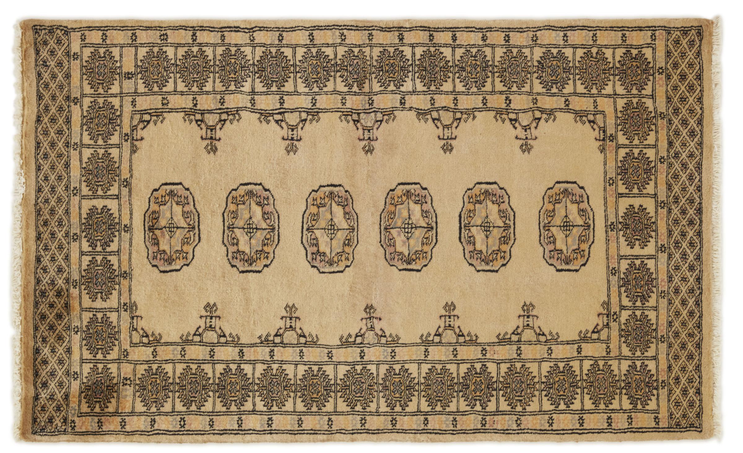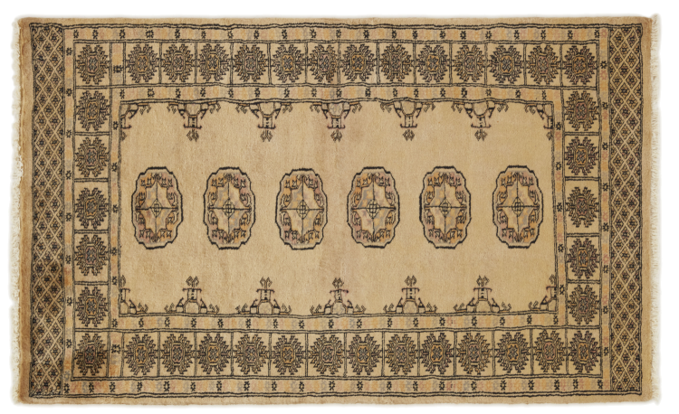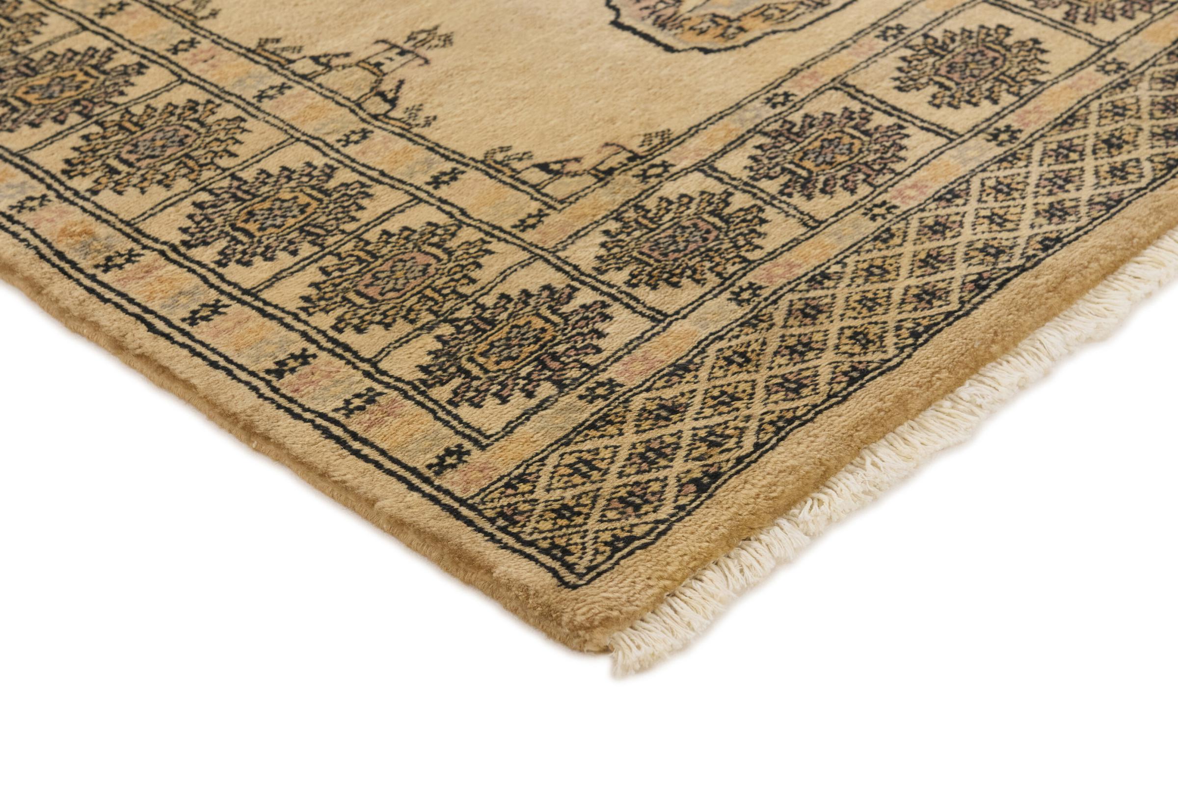 Una gran parte de la producción de alfombras pakistaníes tiene lugar en las ciudades de Lahore y Karachi y sus alrededores. Muchos de los tejedores de alfombras de esa época huyeron a Pakistán durante la guerra con la India y se establecieron allí. Hoy en día, se conocen especialmente las alfombras anudadas a mano de Pakistán Bukhara. Al igual que las alfombras orientales afganas, las alfombras paquistaníes también son de colores oscuros y en su mayoría tienen tonos rojos. También el conocido patrón de pata de elefante (patrón octogonal repetido) se puede encontrar en un pakistaní.