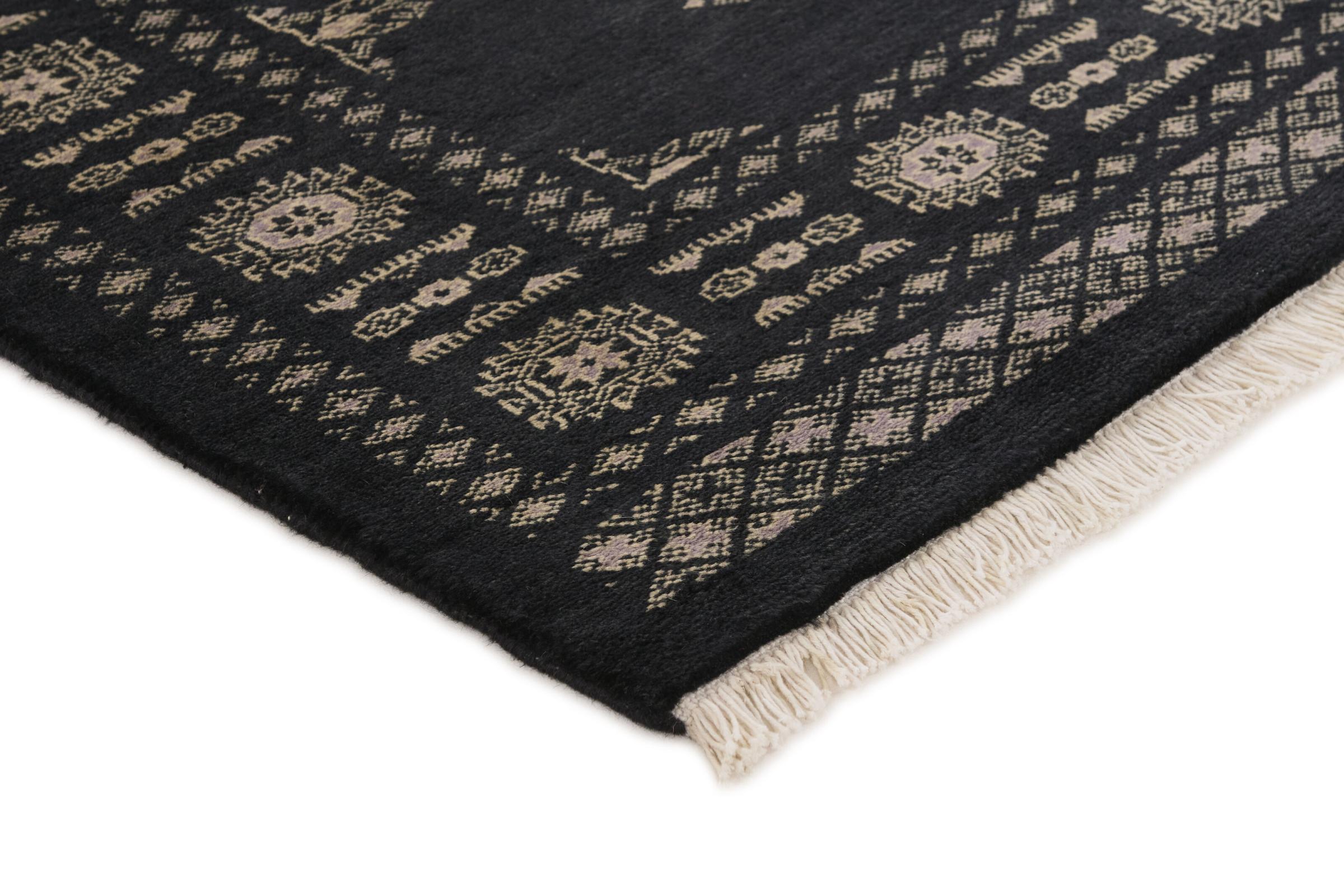 Esta alfombra anudada a mano procedente de Pakistán tiene rasgos muy típicos. Los ornamentos redondos se repiten en el suelo y conforman el tipo de alfombra. 2Ply y 3Ply son diferencias en la densidad de anudado de las alfombras. Una 3Ply suele tener un anudado más denso y, por tanto, es más costosa de producir y algo más robusta. Estas hermosas alfombras son populares por sus fascinantes colores y su diseño sereno.