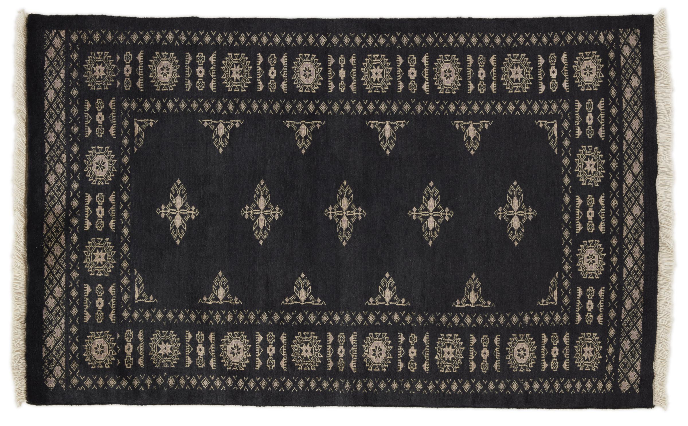 Una gran parte de la producción de alfombras pakistaníes tiene lugar en las ciudades de Lahore y Karachi y sus alrededores. Muchos de los tejedores de alfombras de esa época huyeron a Pakistán durante la guerra con la India y se establecieron allí. Hoy en día, se conocen especialmente las alfombras anudadas a mano de Pakistán Bukhara. Al igual que las alfombras orientales afganas, las alfombras paquistaníes también son de colores oscuros y en su mayoría tienen tonos rojos. También el conocido patrón de pata de elefante (patrón octogonal repetido) se puede encontrar en un pakistaní.